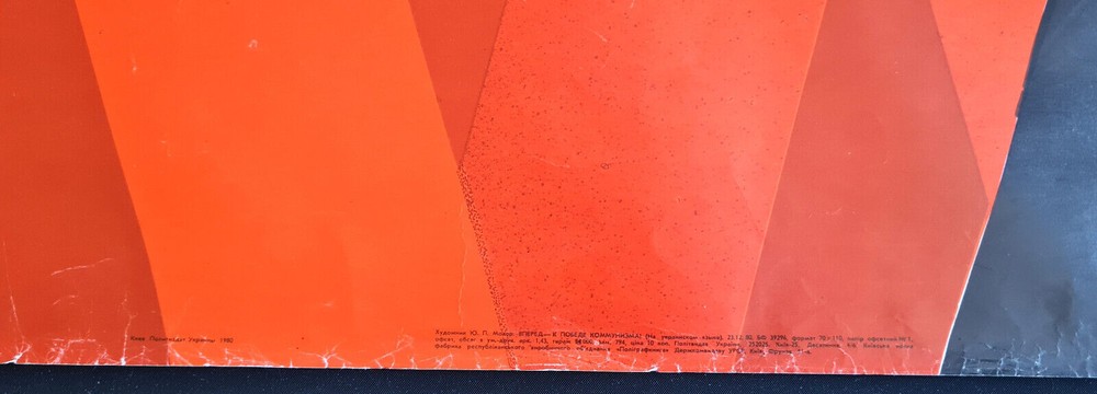 - Literally English translation: AHEAD, TO THE COMMUNISM VICTORY! border-spacing POSTER ARTIST: MOKHOR YURIY PAVLOVICH SUBJECT: COMMUNISM PROMOTION PRINT YEAR: 1980 LANGUAGE: UKRAINIAN PRINT RUN: 14.000 SIZE: 27" x 42" = CM: 69x 108 PUBLISHED BY: "POLITIZDAT UKRAINY", KIEV CONDITION: ROLLED, NEAR TO GOOD - - - Listing and template services provided by inkFrog