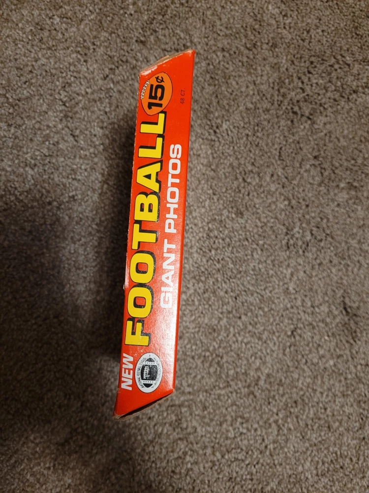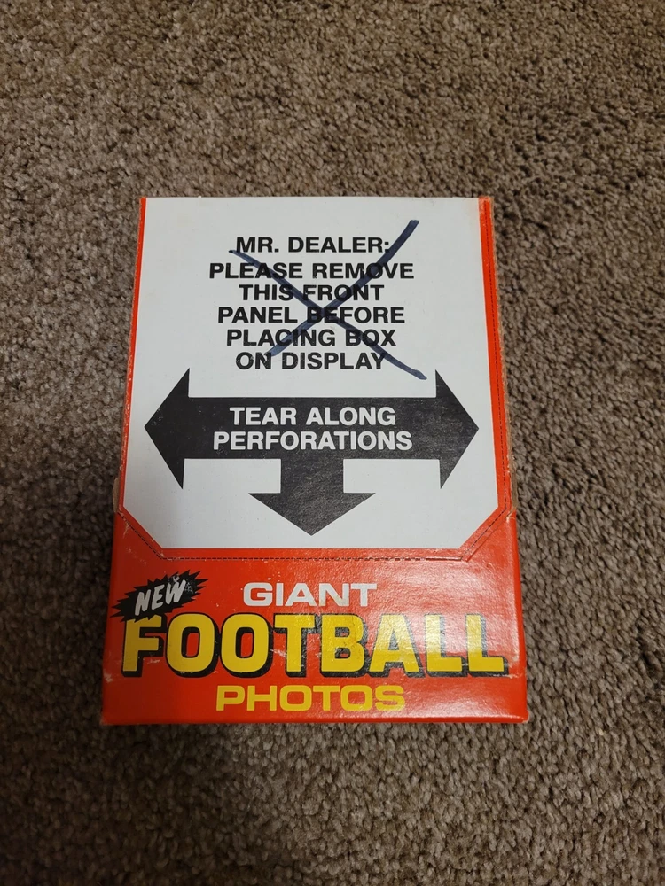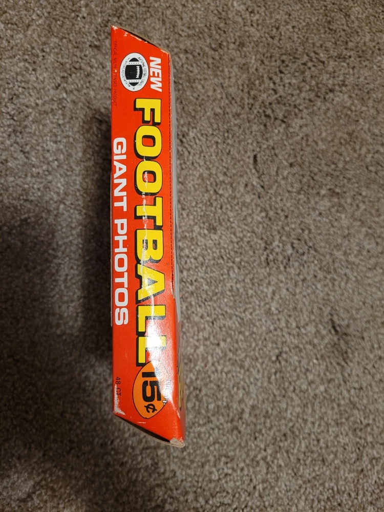 This 1980 Topps Giant 5x7 Football Photos 48 Count Unopened set is a must-have for any football card collector. Featuring players from different teams, this set is a great addition to your collection. The cards are in great shape and have been kept in their original packaging. Each card is a high-quality photograph of a famous football player in action. The set includes 48 cards, making it a substantial addition to your collection. The 1980 Topps Giant 5x7 Football Photos set is an excellent investment for any football fan who appreciates the beauty of the game. Get your hands on this rare set now! Packaging does have some wear as seen in pictures.