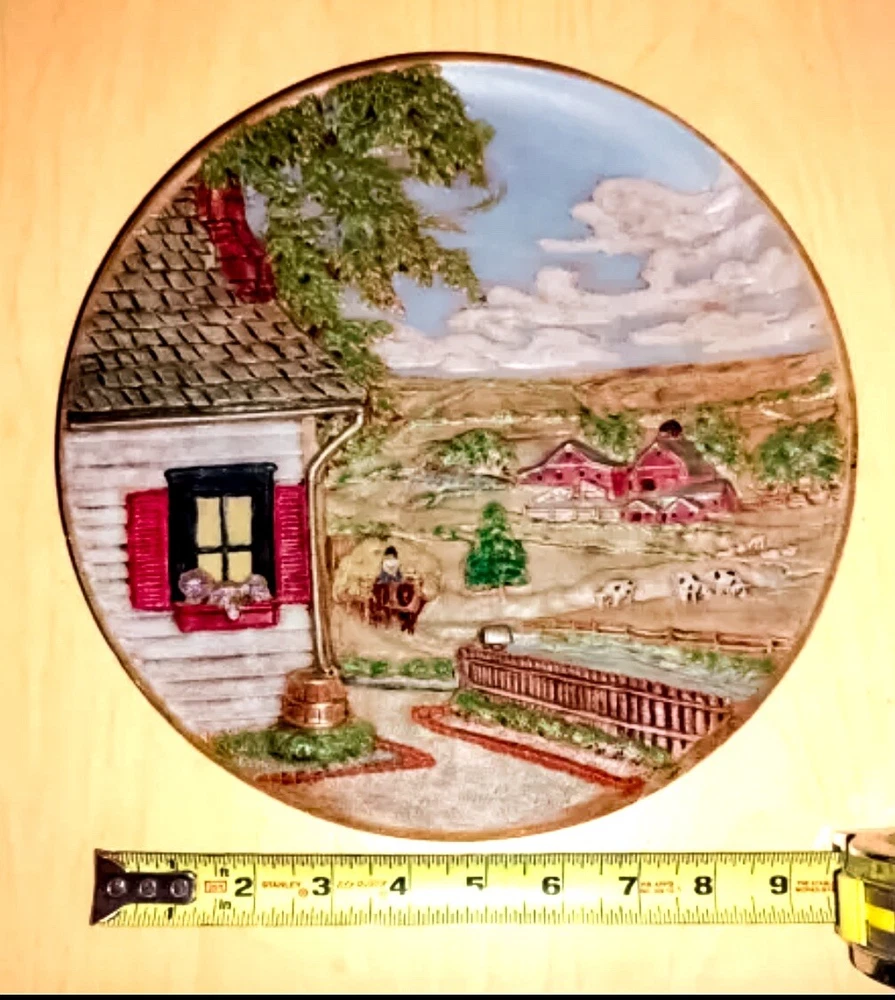 A wonderfully depicted change of seasons on this ceramic decorative wall plate by Byron Molds. Hand finished in 1980, in good condition with minor damage. Please inspect photos before you purchase. 10 1/4 diameter These wall are part of a 4 part series.