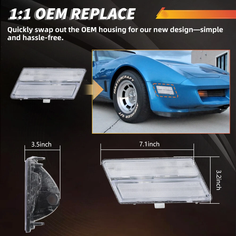 Product Detail Copyright©MotoringPlus Details This page features One Pair (2 Pieces) Clear Lens Front Corner Turn Signal Marker Lights Kit For 1980-1982 Chevry Corvette C3 These lamps are made with high-quality Polymethy l Methacrylate (PMMA) and Polycarbonate (PC) plastics No modification required! Each piece is easy to install with an OEM fit, Instantly transform your car and give it a modern and trendy appearance and feel! Note: Bulbs & socket adapters are NOT included Specifications: 100% Brand new and quality Lens Color: Clear A complete set of two lamps, replacement for the driver side & passenger sides Compatible With 1980-1982 Chevry Corvette C3 Directly replace or repair your car's front signal marker lamps CE DOT SAE approved Application: For 1980 1981 1982 Chevry Corvette C3 Replace OEM # 5936591 & 5936593 Please make sure you have available space in your car for these lamps to fit before placing order. Package include: 2PCS Driver & Passenger side Front Corner Turn Signal Marker Lights (Clear Lens) Installation: Direct replacement the OEM parts without any modification needed Note: Professional installation is highly recommended! Returns Policy Shipping Policy Payment Method About US Contact Us Returns Policy Please check actual stock bulb model & housing size before purchasing replacement bulbs. Compatibility list on eBay listing is not a complete list and it is a known issue that there are errors on it. Half year warranty from the purchased date. Please contact us via ebay message before returning the defectived item. Our warranty does not extended to any products that are physically damaged or that are not under normal operating conditions as a result of misuse or improper installation on the buyers/user's part. Return items should include the original packaging and all accessories. Buyers MUST contact us for the returning address. In all cases, buyers pay shipping fees at their own cost to return products for exchange or refund. We will be responsible for the postage of replacements. Refund will be made upon receipt of the returned item. Our goal is to make sure you are a happy buyer and pleasant shopping with us. If you have any problems, please contact us immediately before leaving us any negative or neutral feedback. We understand the concerns and frustrations you might have, and will do our endeavor to resolve the issues. Please give us the opportunity to resolve any problem. Shipping Policy Item will be shipped from China / Hongkong Post by Standard International Post. All orders will be shipped to buyer's paypal shipping address within 24 hours after receiving your verified payment (Excluding Weekends and Public Holidays) International order may takes about 15-25 business day delivery time for most countries. Transactions on weekends or public holidays,item will be sent later on work time. Payment Method We accept Paypal ONLY. Unpaid transaction will be cancelled after 8 days About US Contact Us We are dedicated to providing you the best shopping experience and high quality items at a very low price. If you are satisfied with our service,Please remember to leave us 5 STAR for All Detailed Seller Ratings If you found any problem/issue of our merchandise/service,please let us know before leaving any negative feedback! Please feel free to contact us if you have any question. Any message will be replied within 24 hours. We will try our best to help! Home Payment Shipping About us Contact us Copyright©MotoringPlus Home Payment Shipping About us Contact us Store Categories Store Categories SIDE MARKER LIGHT TURN SIGNAL LIGHT TAIL BRAKE LIGHT LICENSE PLATE LIGHT DECODER OTHERS Other Product Detail Copyright©OFFKAT Why Buy From Us Why Buy From Us Details This page features One Pair (2 Pieces) Clear Lens Front Corner Turn Signal Marker Lights Kit For 1980-1982 Chevry Corvette C3 These lamps are made with high-quality Polymethy l Methacrylate (PMMA) and Polycarbonate (PC) plastics No modification required! Each piece is easy to install with an OEM fit, Instantly transform your car and give it a modern and trendy appearance and feel! Note: Bulbs & socket adapters are NOT included Specifications: 100% Brand new and quality Lens Color: Clear A complete set of two lamps, replacement for the driver side & passenger sides Compatible With 1980-1982 Chevry Corvette C3 Directly replace or repair your car's front signal marker lamps CE DOT SAE approved Application: For 1980 1981 1982 Chevry Corvette C3 Replace OEM # 5936591 & 5936593 Please make sure you have available space in your car for these lamps to fit before placing order. Package include: 2PCS Driver & Passenger side Front Corner Turn Signal Marker Lights (Clear Lens) Installation: Direct replacement the OEM parts without any modification needed Note: Professional installation is highly recommended! Returns Policy Shipping Policy Payment Method About US Contact Us Returns Policy Our 60-day Satisfaction Guarantee assures our customers that they will receive all orders promptly and exactly as described. In addition, it allows customers to return new and unused products in their original factory condition for any reason within 60 days from the date of purchase. Buyers are responsible for appropriate packing, returning shipping cost, insurance and returning the item in "new" condition. Used items will not be accepted for return. We will replace the returning item with an identical item, issue a full store credit or a full refund. Our goal is to make sure you are a happy buyer and pleasant shopping with us. If you have any problems, please contact us immediately before leaving us any negative or neutral feedback. We understand the concerns and frustrations you might have, and will do our endeavor to resolve the issues. Please give us the opportunity to resolve any problem. Shipping Policy We only ship to paypal confirmed address. Item will be sent within 24 hours after payment received We will ship all orders asap. from our USA 