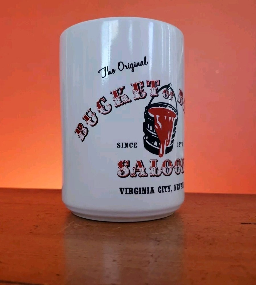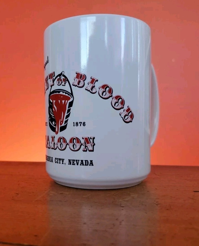 1980's Bucket Of Blood Saloon Original Coffee Tea Mug Cup Virginia City Nevada Nice original bucket of blood saloon mug in good condition No Chips Or Cracks marks in bottom of cup from stirring a spoon around thanks for Looking Lot 100