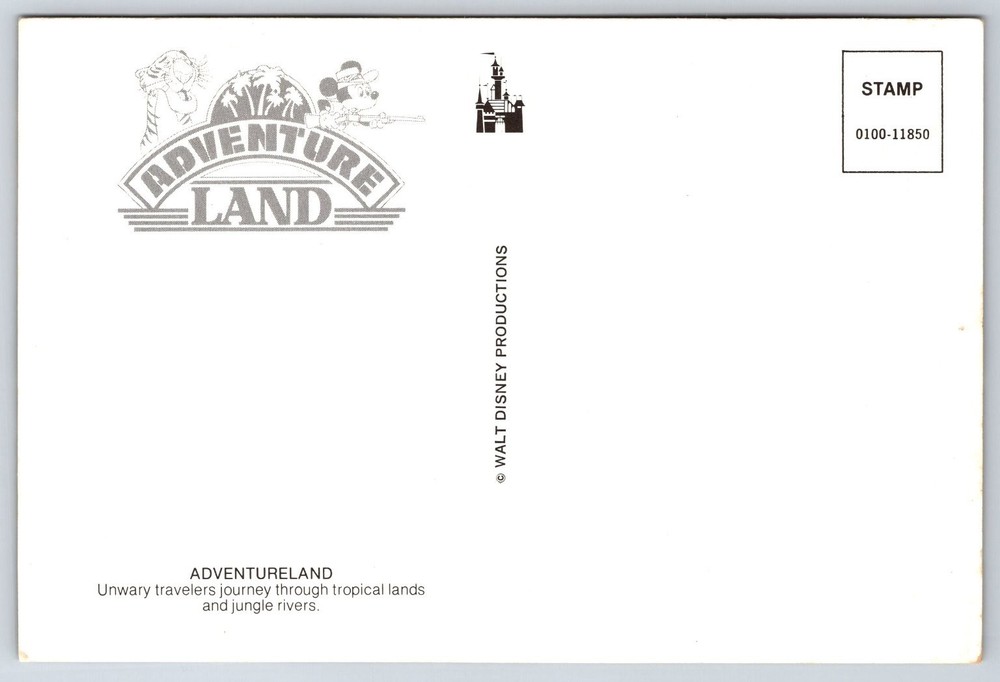 This vibrant vintage postcard features colorful scenes from Disney's Adventureland, showcasing iconic characters Winnie the Pooh and Tigger amidst a bustling crowd, traditional Polynesian dancers performing in full costume, and a serene Jungle Cruise boat passing lifelike elephant statues spraying water. Printed using the Photochrome technique (1939 to present), the postcard captures the tropical and adventurous spirit of this beloved Disney park land. The back of the card includes the classic Adventureland logo, a brief description highlighting the journey through tropical lands and jungle rivers, and the Walt Disney Productions copyright, confirming its authenticity. Measuring a continental 6 x 4 inches, this collectible postcard offers a nostalgic glimpse into Disney park entertainment and attractions, making it a perfect addition for Disney fans, collectors of theme park memorabilia, and those fascinated by mid-20th century photochrome postcards. The combination of live characters, cultural performances, and ride imagery provides a well-rounded representation of Adventureland, enhancing its appeal as a unique souvenir or display piece. SHIPPING COST: ALL ORDERS ARE EXPIDITED, ORDERS ARE TYPICALLY SHIPPED WITHIN TWO HOURS OF MY RECEIPT OF PAYMENT UNLESS I AM OUT OF TOWN SOURCING NEW ITEMS OR MY STORE IS IN VACATION MODE BOTH OF THESE MITIGATING FACTORS ARE RARE. SEE MULTIPLE SCANS OF ITEM. Please use eBay magnifier for a more detailed view of the item. CONDITION: Moderate wear and some soiling. Combined shipping always available on multiple items. PLEASE USE THE E-BAY SHOPPING CART AS IT MAKES COMBINED SHIPPING EASIER TO SEE. Thank you! I have a great passion for collecting postcards, photographs and ephemera. My store offers many rare and hard to find items as well as always being able to guarantee their authenticity as vintage and genuine. Each week I will be posting rare, unusual, high-quality and unique items for the advanced, intermediate and beginning collector. Our items are ALWAYS vintage. Please bookmark our store and I look forward to helping you build your collections!