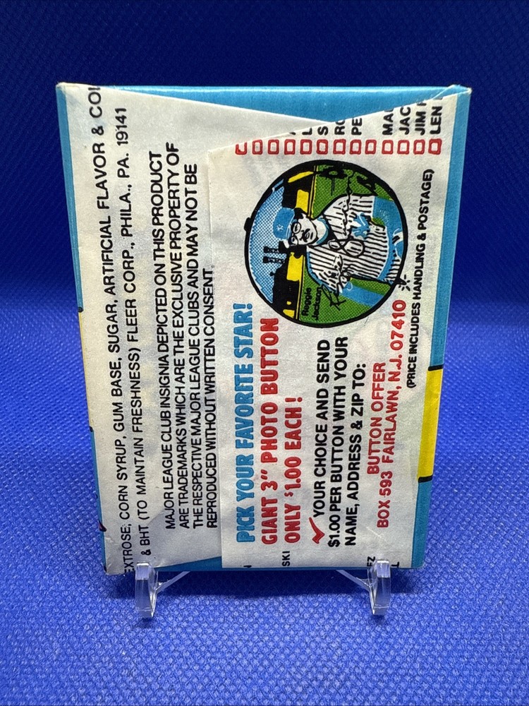The 1981 Fleer MLB Baseball 5 Sticker Card Wax Pack is a vintage sports trading card set manufactured by Topps. This pack contains 15 cards made of card stock, featuring players from the Major League (MLB) in English language. The set includes a base set, rookie cards, and a checklist, making it a desirable collectible for baseball fans and card enthusiasts. Each pack is authenticated by Beckett Grading Services, adding to its value and authenticity.