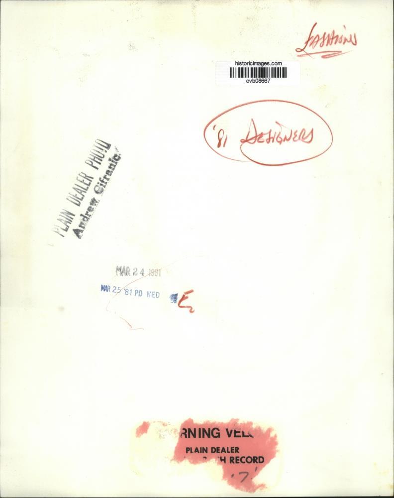 ebay template Note: Please study the images carefully to determine the condition of this vintage photograph, as it may not be in perfect condition. It may contain wrinkles, cracks, and possibly even tears due to its age and how it was handled before it got to us. A scanner may interpret colors and contrast differently than human eyes will, so it is possible that the actual photograph may be slightly darker or lighter in person. This vintage photograph is offered for sale as a collectible item and conveys no transfer of copyright. 1981 Press Photo Fashion Designers 1981 - cvb08667 This is an original press photo. Fashion Designers 1981Photo measures 8 x 10.25inches. Photo is dated 03-24-1981. PHOTO FRONT PHOTO BACK Historic Images Part Number: cvb08667 FAQs Q: Can I just download a digital version instead? A: No, we sell only vintage originals and do not make or distribute any copies, including digital ones. Q: Do you combine shipping and invoices? A: Multiple photos won on the same seller ID combine automatically through the eBay checkout process. If you encounter problems with this, send us a message via eBay messaging and we will send you an invoice. Due to eBay limitations, we cannot combine items won on our different seller IDs for a single shipping charge. Q: How quickly do you ship the items once paid? A: We ship within one business day after your payment clears. If you do not receive an "order shipped" email from us by the close of the second business day from submitting payment, please e-mail us via eBay messaging. Q: How do you make sure my photograph arrives safely? A: We package each order between two cross-corrugated pieces of cardboard to ensure that the package is as difficult to bend as possible. We then wrap each order in a plastic sheet to help protect against moisture. We want you to rest assured that we take every precaution to ensure that the photograph you receive will be in the same condition in your care as it was in ours. Q: Will the "Historic Images" watermark be on my photo when I receive it? A: No. This is a digital watermark we use to protect our images. It is not printed on the photo. Q: What are your office hours? A: eBay for us is a business, and a very fun one to be in! We are open M-F 9 to 5 (CST). Therefore, we do not return e-mails and phone calls over the weekend. We observe the following holidays: New Years Day, Memorial Day, Fourth of July, Labor Day, Thanksgiving and the day after Thanksgiving, Christmas Eve and Christmas Day. Q: Where did all these vintage photos come from? A: These original vintage photographs are from various news service and newspaper photo archives from locations around the country including: Boston, Detroit, Tampa, Chicago, Denver, Seattle, New Orleans, Milwaukee, Portland, Spokane, and more. We do not copy or reproduce any photographs -- every item is a unique vintage piece that was housed in a news archive. Q: Can I use this photograph in my book/blog/website? A: The short answer is no. There is no transfer of copyright for republication or reproduction with these photographs when you purchase them, and only photographs taken before 1923 are currently automatically in the public domain. Permission from the copyright holder, which usually can be identified from the back of each photo, must be sought to republish or reproduce the image for any purpose. Q: Do you relist items (in case I miss an auction ending)? A: Auction items that receive no bids are relisted in our store (historicimages-store on eBay) as a fixed-price item and at a higher price than the starting auction price. Q: Do you leave feedback? A: Yes, we always leave feedback for buyers. Our software monitors when our buyers leave us feedback, then notifies us that we can leave feedback for the buyer. Rest assured, if you leave feedback, we will do the same! Check out our family of eBay IDs: historicimages01 Sports Photos historicimages02 Entertainment Photos historicimages03 Americana Photos historicimages04 International & War Photos historicimages05 Transportation Photos historicimages06 Photos of All Subjects historicimages07 Entertainment Photos historicimages08 Newsworthy Photos historicimages09 Entertainment Photos historicimages10 Sports Photos historicimages-store Our largest fixed-price selection historicimages-gallery Hand-picked photos Saturday night auctions About Us Historic Images was formed in September 2009, with a handful of scanners working out of a basement to digitize newspaper photo archives. We have since moved out of the basement, and we can now archive thousands of photos per day. Our company has worked with magazines and newspapers from Detroit, Boston, Denver, Seattle, Tampa, Chicago, and New Orleans, just to name a few. We are constantly adding to our inventory, and have assembled an archive of millions of photos to date. As our company evolved, we began our eBay business, which brings thousands of fresh auctions per week to the world's largest online auction marketplace. Our custom software systems and team of great employees allow us to efficiently scan and sell large photo archives online. At the very core of our company's DNA is a strong commitment to customer satisfaction and strict integrity for our product. Our promise to you is that we will do everything in our power to provide you a great buying experience. Copyright 2009 - Present, Historic Images, Inc. Sell Smarter with Kyozou. Inventory and Ecommerce Management