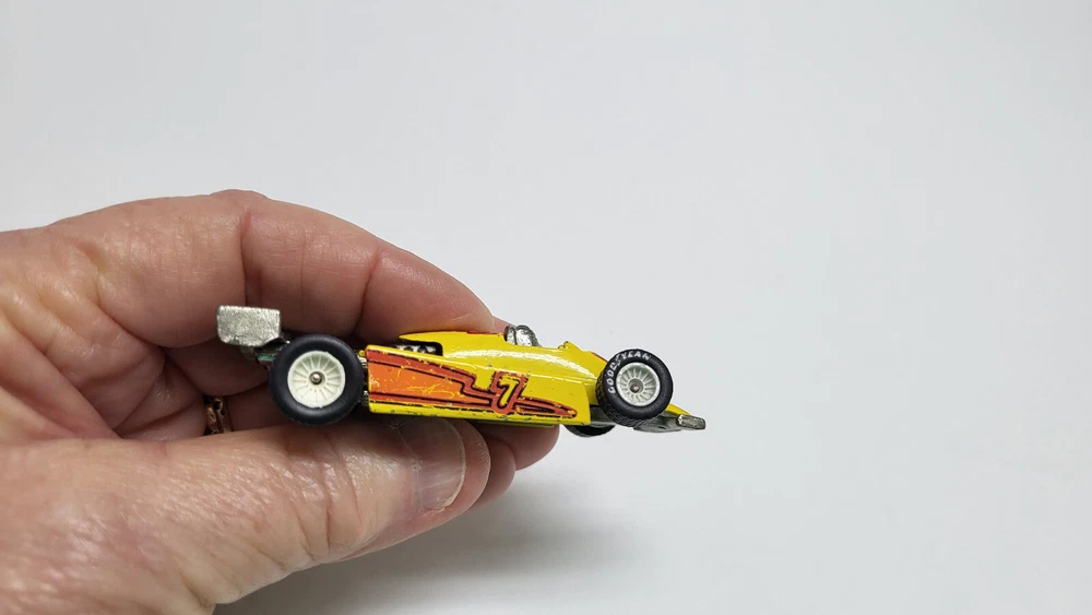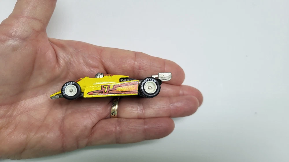 1. This vintage 1982 Hot Wheels Turbo Streak is a fantastic find for collectors! The Real Riders turbine wheels with Goodyear printed tires add amazing detail, and the rare upside-down printing error on the rear tire makes it even more special. The orange-red-black color combo pops, and the condition looks great. A must-have for error collectors or anyone who loves classic Hot Wheels—definitely a standout piece in any collection. Seller was quick to ship, and everything arrived safely. Highly recommended!