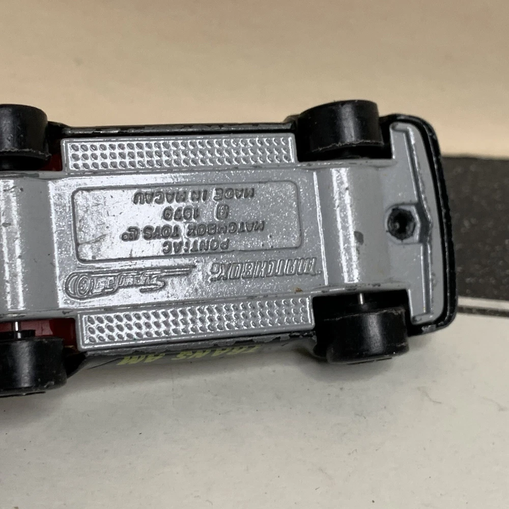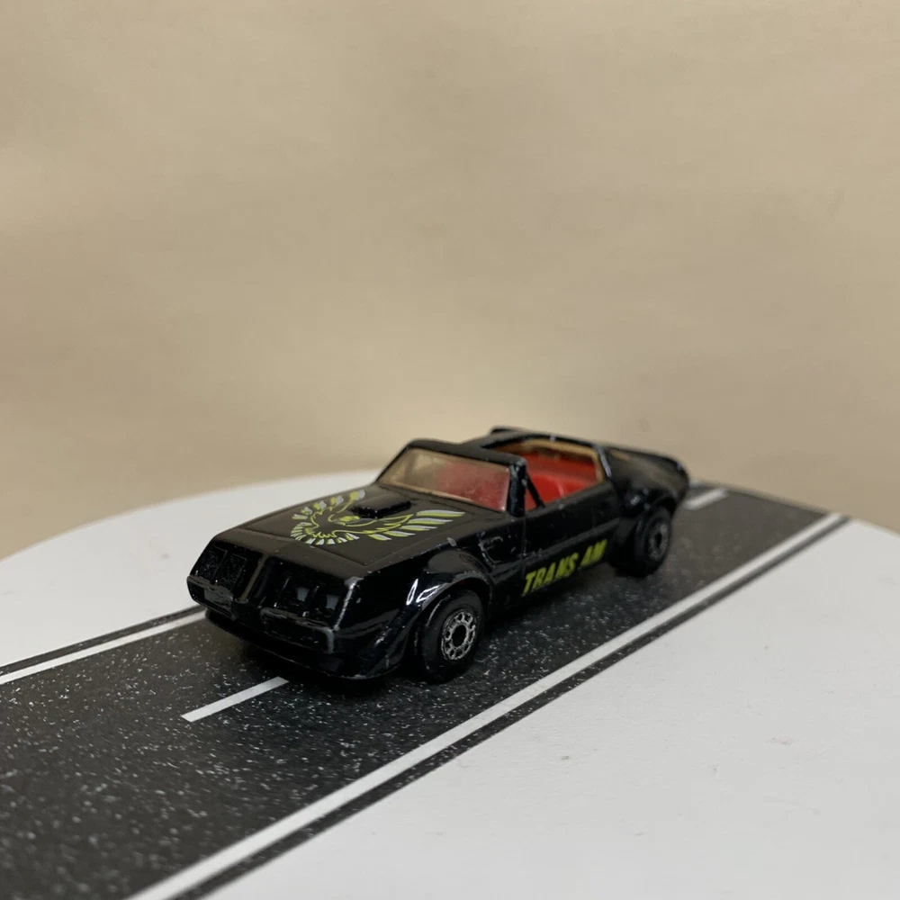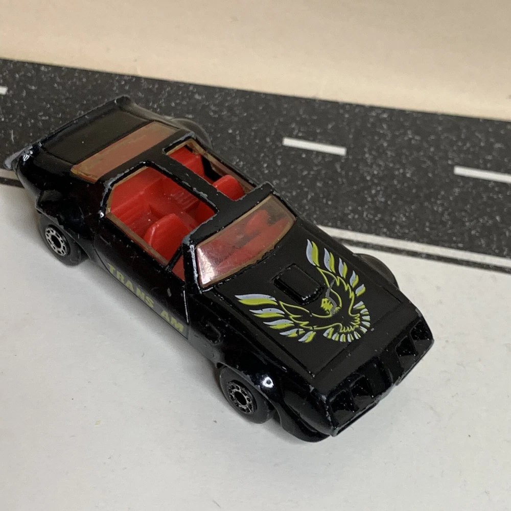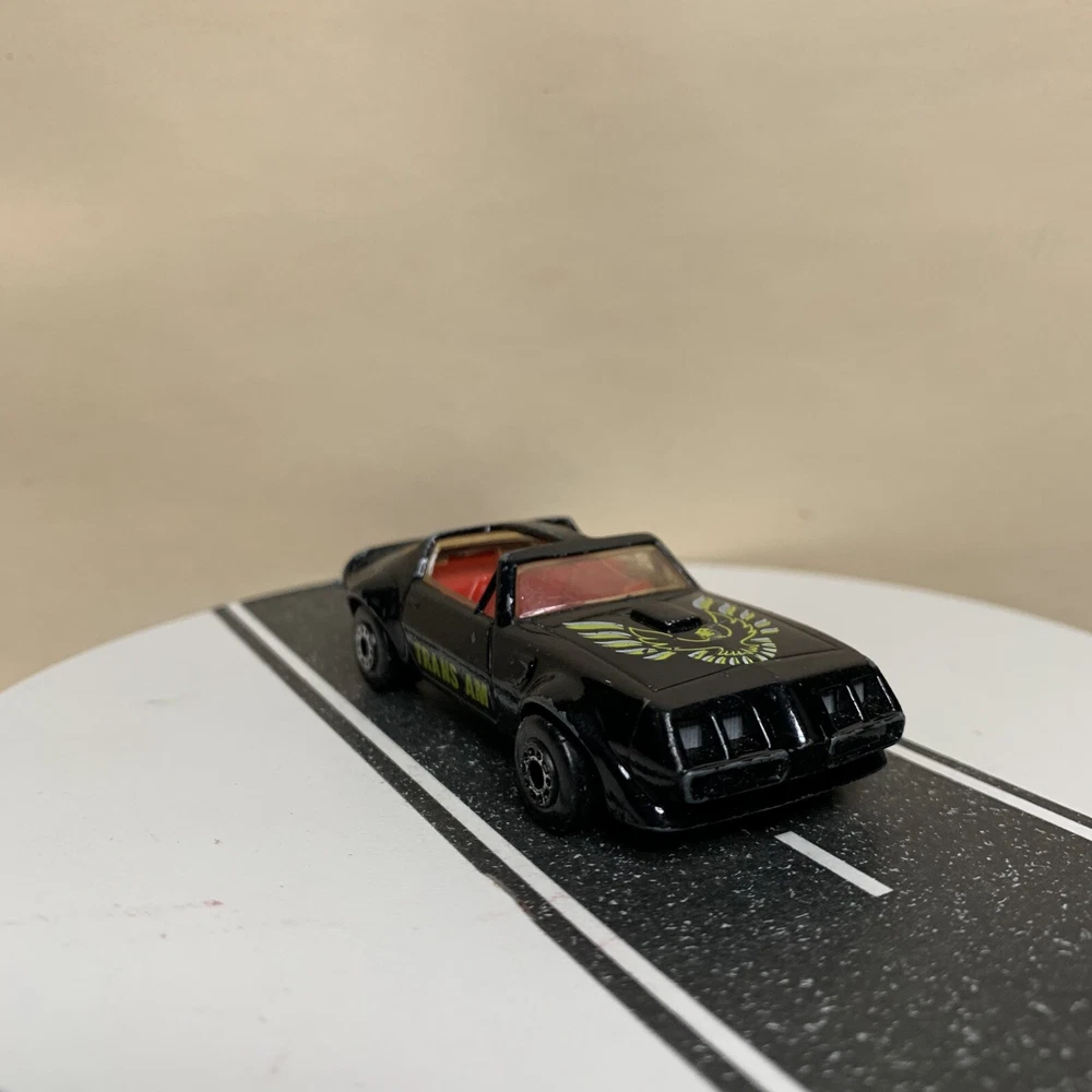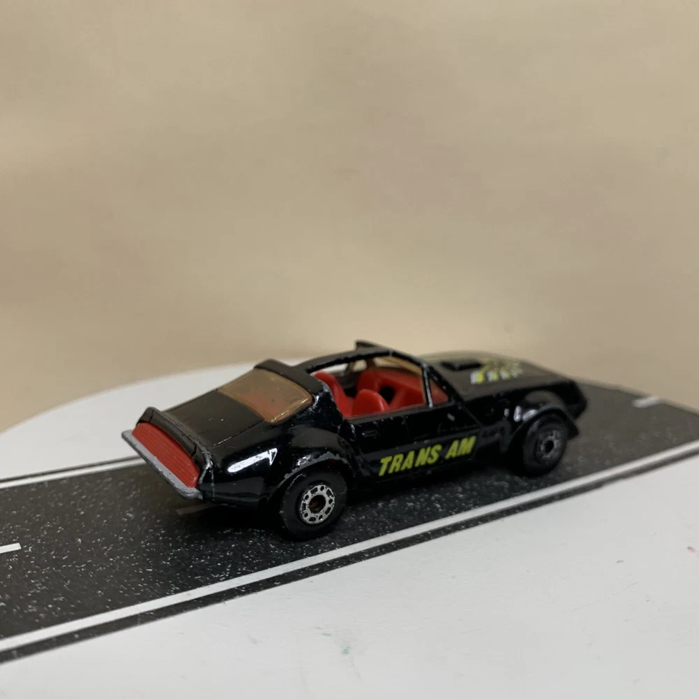 Material:DiecastVehicle Type:CarSeries:Matchbox SuperfastVehicle Make:PontiacVehicle Year:1982Year of Manufacture:1982Model:Pontiac Firebird Trans AmBrand:MatchboxColor:Black