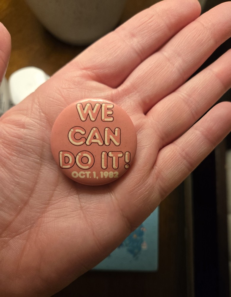 1982 Vintage EPCOT Opening Day Disney Cast Member We Can Do It Pinback Button