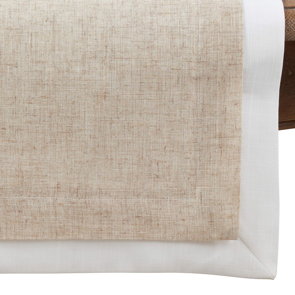 The solid hues and layered design of this beautiful Double Layer Table Runner make it a highly versatile choice for table décor. It can be easily paired with elegant dining sets and centerpieces, while also working well with rustic style tableware. It's the perfect backdrop for family gatherings and formal affairs alike. Size: 18" x 72" Oblong Ivory color backing Material: 80%polyester 20% linen; edge: 100% polyester + Care: wash separately in cold water Ideal for both casual meals and upscale dinner parties. Lends subtle charm to any dinner table.