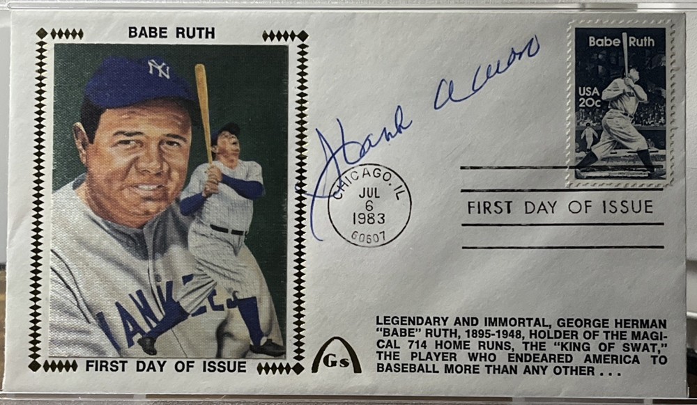 1983 GATEWAY HANK AARON AUTO BABE RUTH FDC PSA/DNA SLABBED HOF FIRST DAY ISSUE