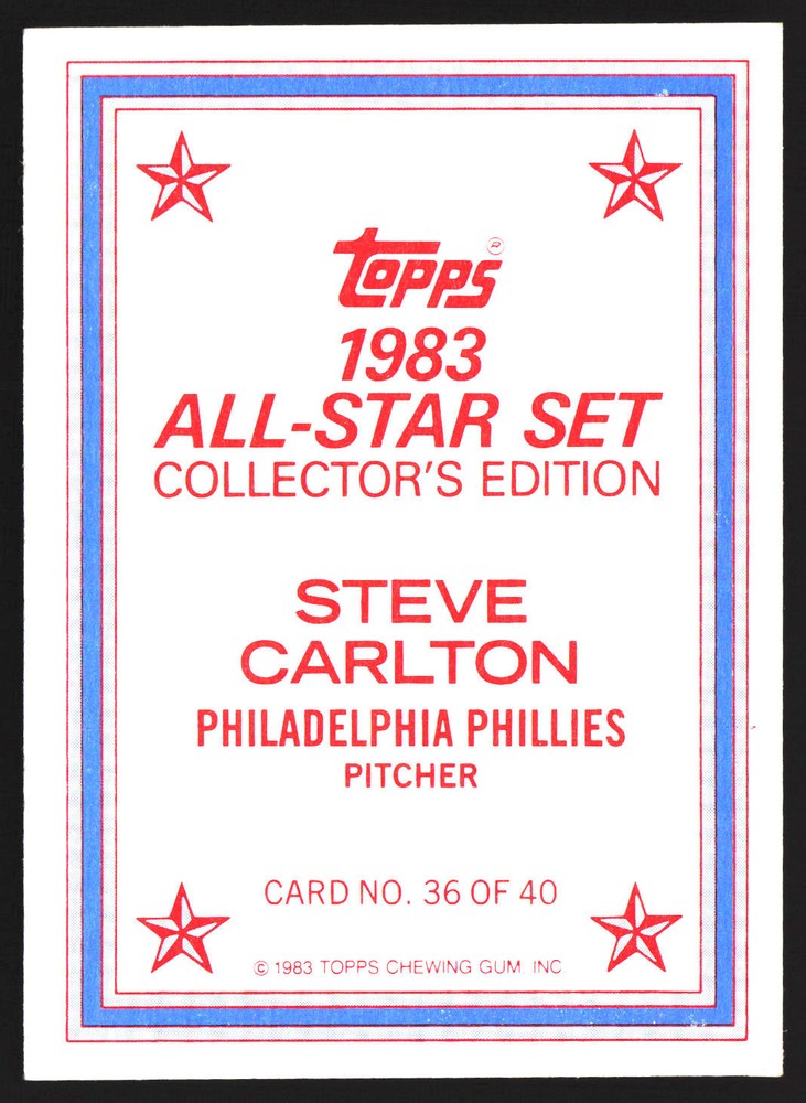$ 1.061983 Topps Steve Carlton #36 Phillies All-Star Card Collector's Edition