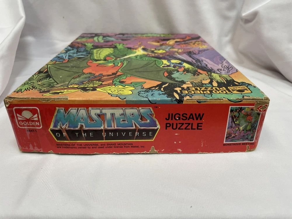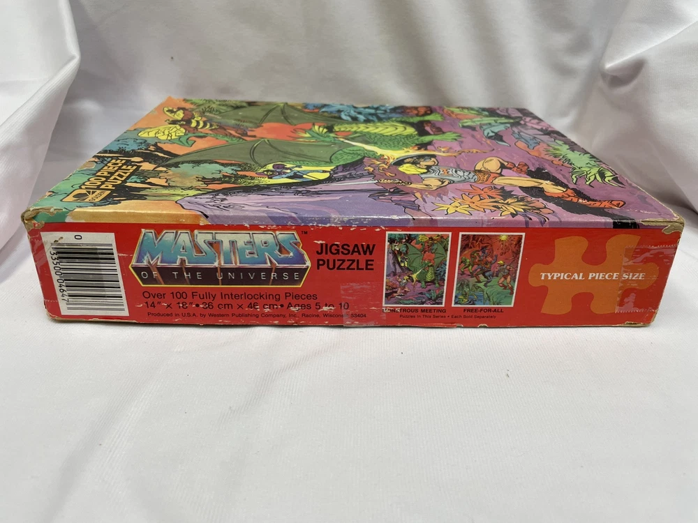 MONSTEROUS MEETING Masters Of The Universe This Vintage Golden Puzzle is Complete 100 pieces Made in the USA Assembled Size 14" x 18" Puzzle is complete, in excellent condition. Box has shelf wear, tape marks and peeling around some of the sides and edges This was a fun puzzle to put together and actually would make a nice wall decoration if assembled, glued and framed! Please be sure and check out all the other gift ready items in my store A BIT OF THIS AND THAT TOO I'm always happy to combine shipping! Thanks for considering my auctions. Your business is very much appreciated! Please email me with any questions. I will respond back quickly. I describe item conditions to the best of my ability and will always point out any flaws or defects that I am aware of. I am an EBay Seller with 100% Positive Feedback! Thank you. Bid with Confidence!