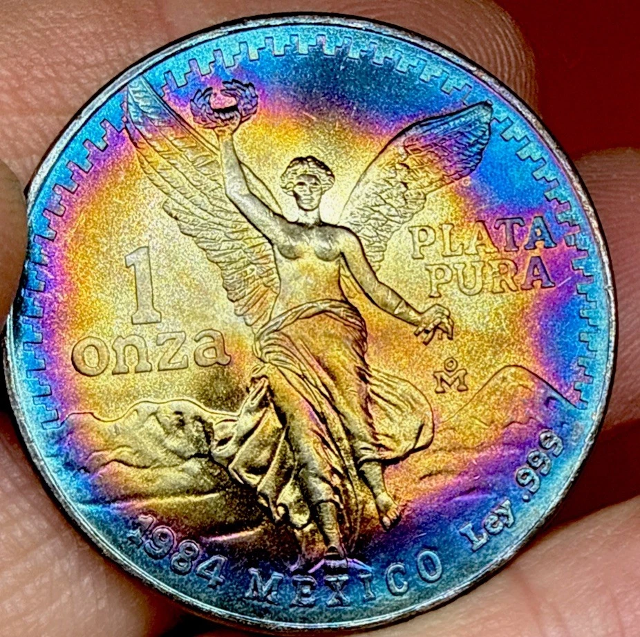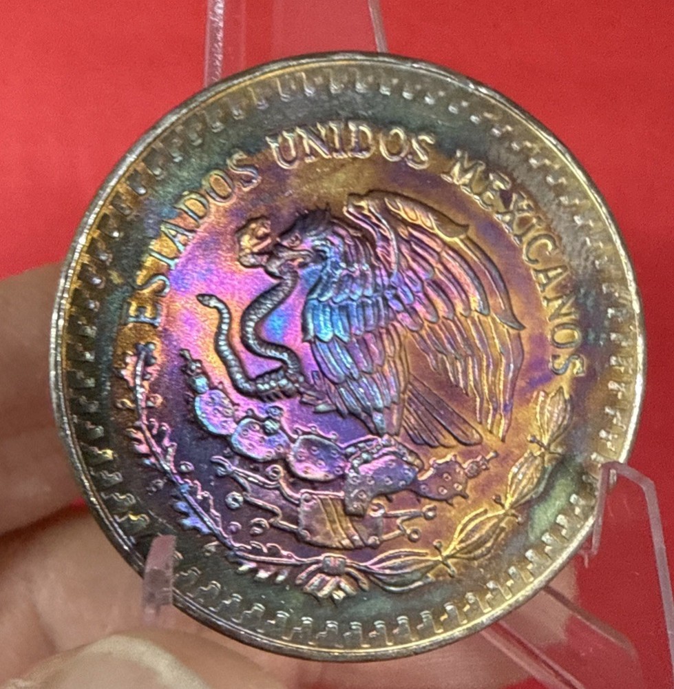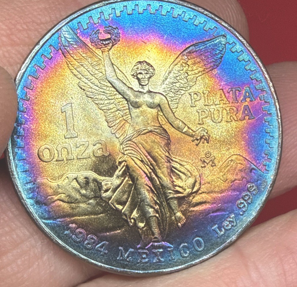 The product is a 1984 Mexican 1 onza silver coin with the unique design of "Monster Natural Toner." This coin is made of silver and is not certified. It is a rare and collectible item that has been in the making for years, making it a valuable addition to any coin or bullion collection.