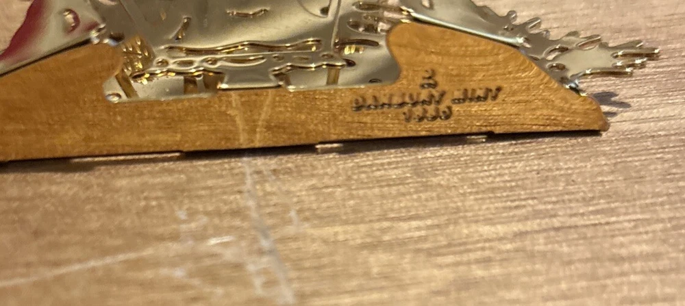 Material:MetalAntique:NoFeatures:Decorative, Hanging, Limited Edition, 3DVintage:YesTheme:ChristmasSet Includes:OrnamentType:OrnamentFranchise:AngelNumber of Items:1Personalize:NoOriginal/Licensed Reproduction:OriginalYear Manufactured:1985Handmade:NoBrand:Danbury MintTime Period Manufactured:1980-1989gtin13:Does not applyCollection:OrnamentsSubject:annualUPC:Does not applyColor:GoldOccasion:ChristmasItem Height:2.5"
