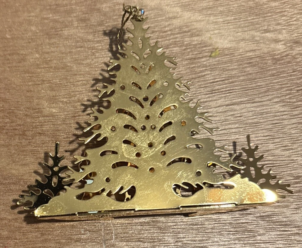1985 Annual Danbury Mint Gold Plated Christmas Ornament Away in a Manger Angels