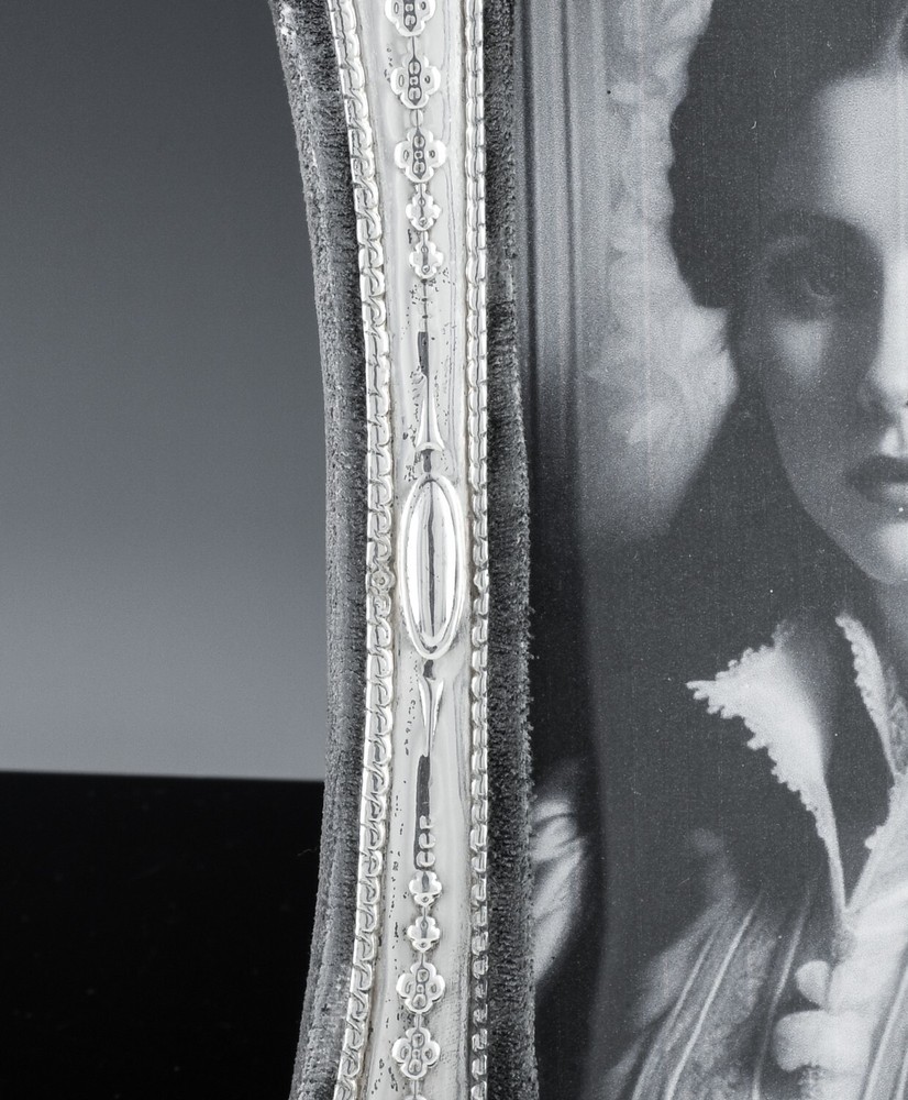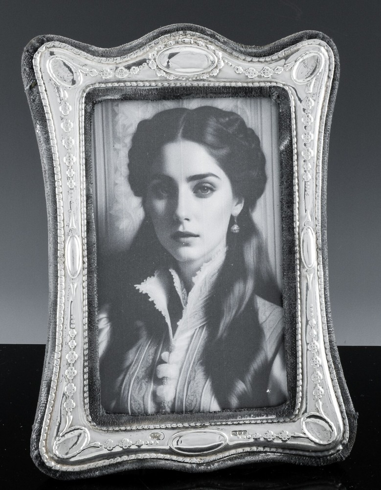 Note To all Buyers. Shipping is usually done within 1 Full Business Day Of Payment. All shipping is provided a tracking number, and regardless of location arrives usually between 2-7 Business days, please ignore the estimated time Ebay displays for you. DESCRIPTION : Part of a lovely collection of desk top or table photo frames we have listed. This beauty features lovely Art Nouveau repousse design, very much in the style you would find 100 + years ago but is actually from 1985 and is made in England by the Keyford Frame company. The Frame is also Hallmarked Sterling Silver as seen. The photo shown is just a print off from the internet to show how a photo of your own would look. Be sure the check the others from the collection as each additional frame will ship for very little extra. CONDITION : In good condition with no cracks or repairs. Showing wear to the material as seen, lending to the antique look. MEASUREMENTS : The frame measures approx. 7 inches tall by 5 inches wide. Holds a photo measuring 5 inches tall by 3 inches wide. Has a total weight of 182 grams. SHIPPING : We offer combined shipping on orders, therefor the more you order the cheaper the shipping!! We also offer Worldwide Shipping on the vast majority of our stock, please contact us to arrange your worldwide and specific shipping needs!