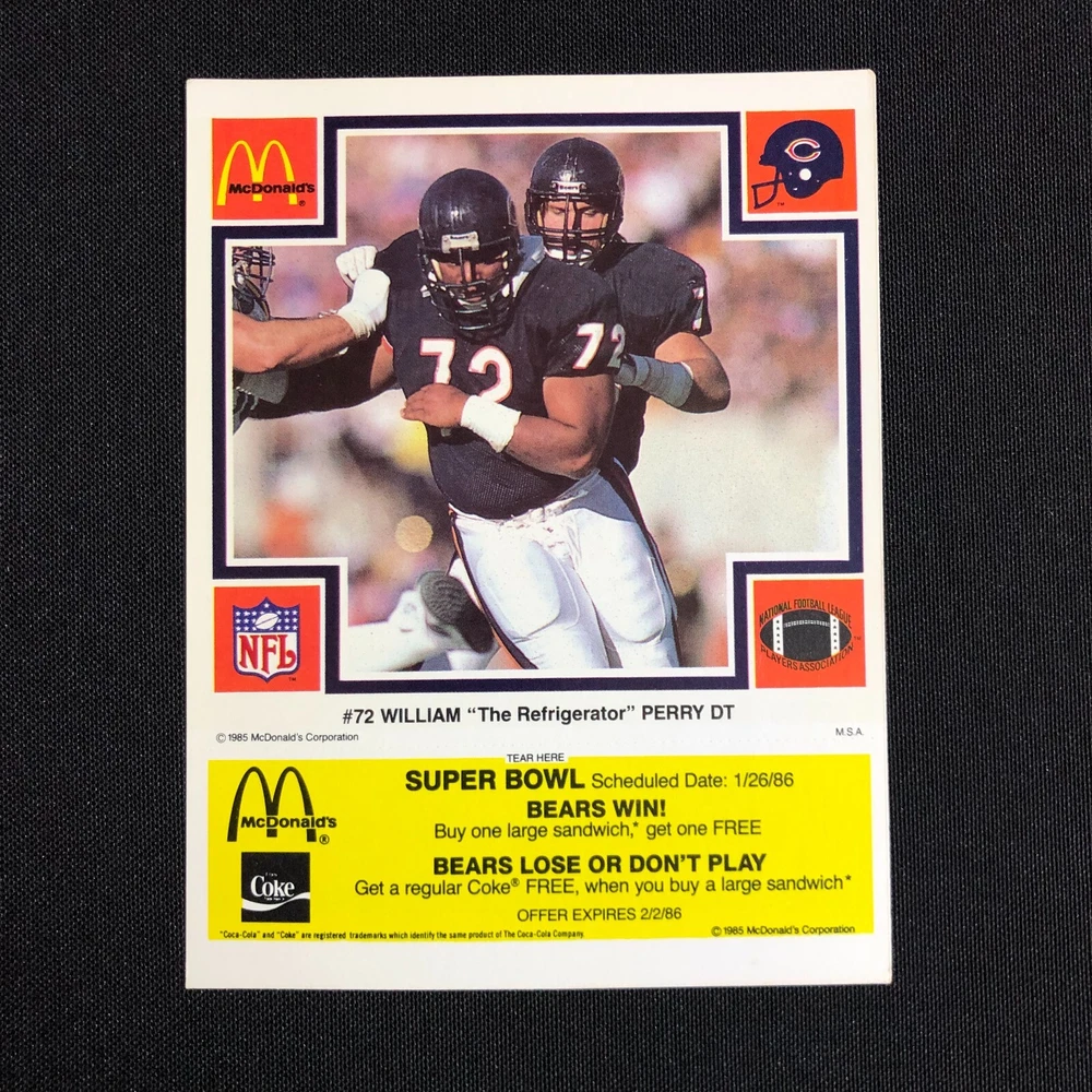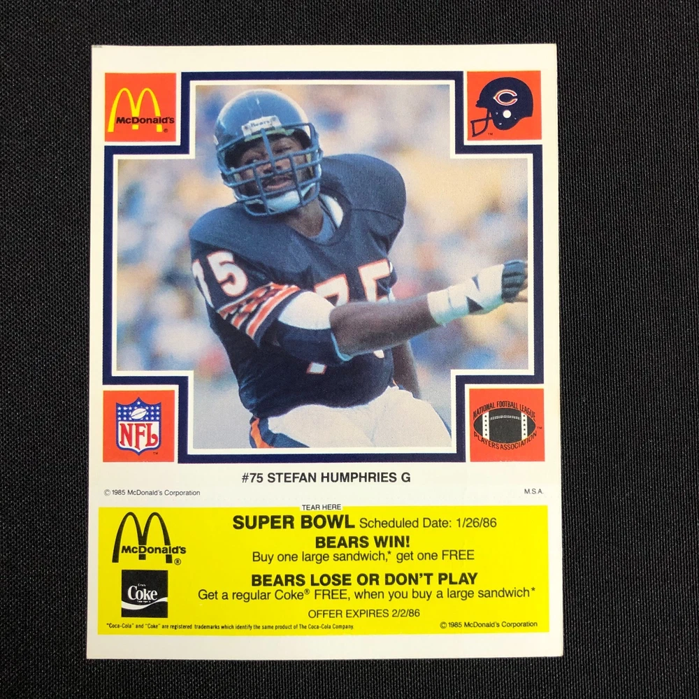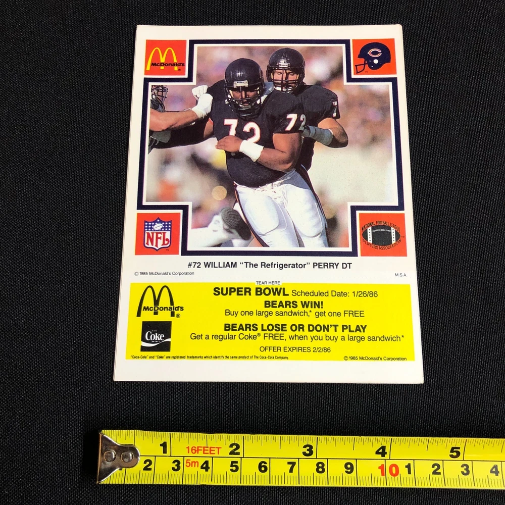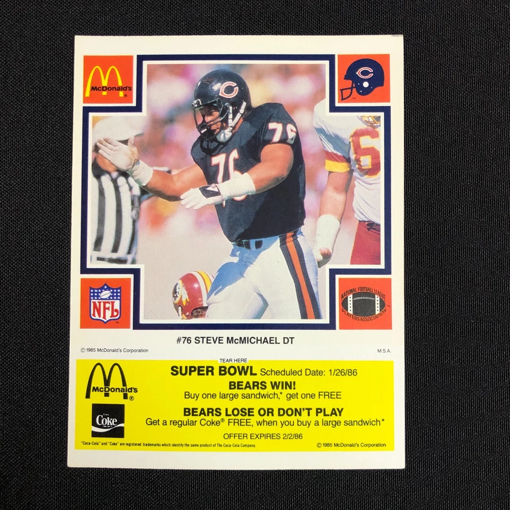 1985 Chicago Bears McDonalds Super Bowl Vintage Coupon Trading Cards Lot of 5