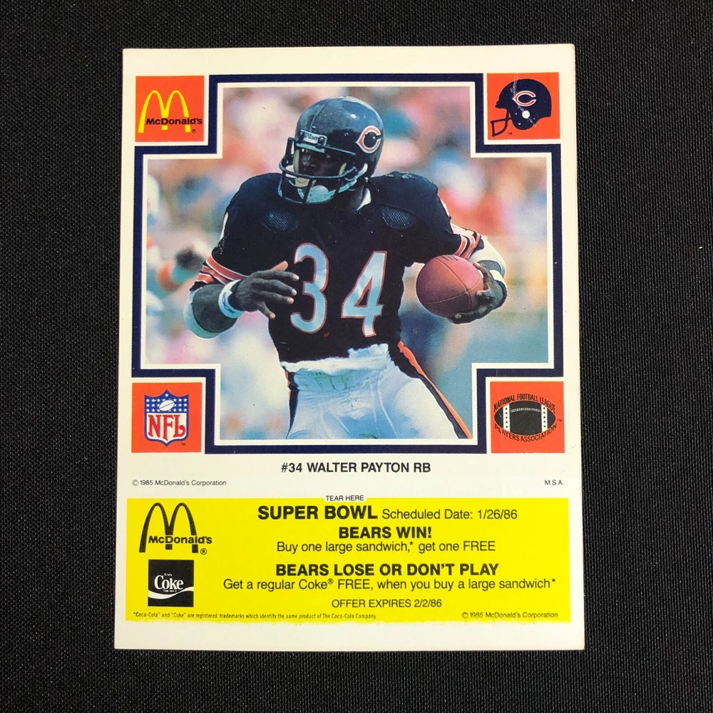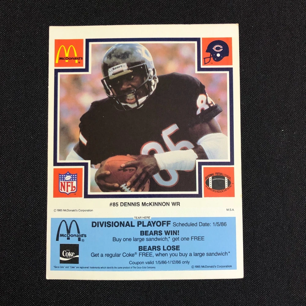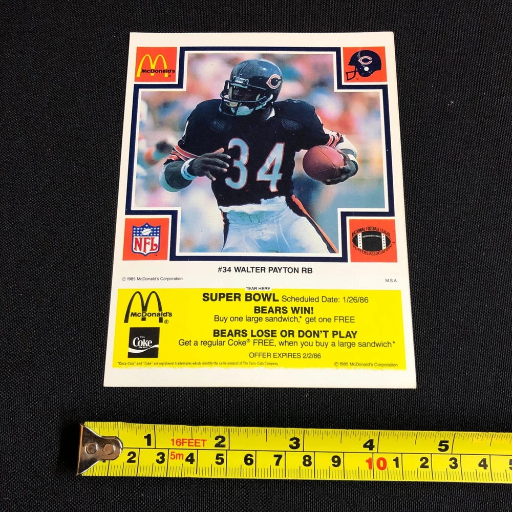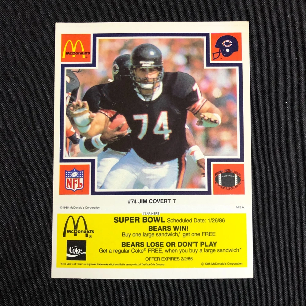 1985 Chicago Bears McDonalds Super Bowl Vintage Coupon Trading Cards Lot of 5