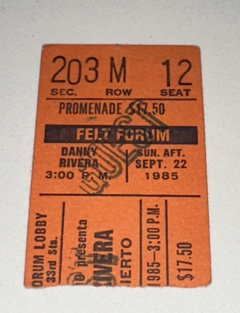 1985 Danny Rivera Latin Music Concert Ticket Stub Felt Forum New York MSG NY