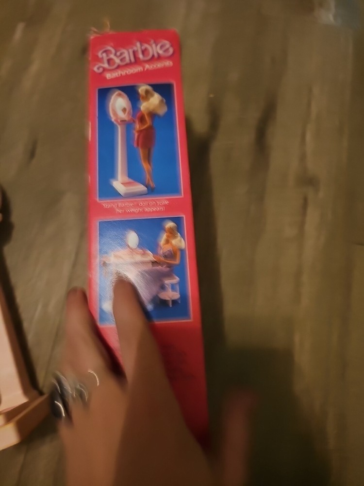 Vintage 1985 Mattel Barbie Bathroom Accents Set With Working Scale. Condition is New. Shipped with USPS Ground Advantage.