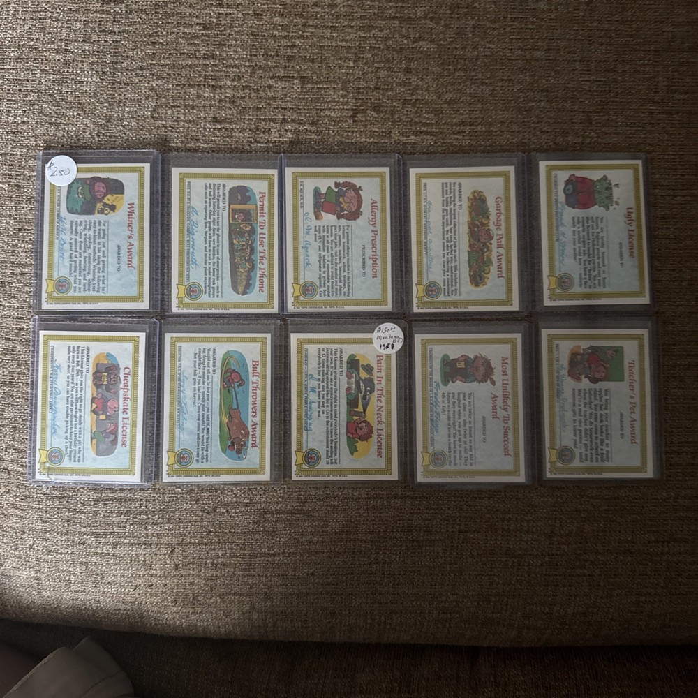 The product is a 10-card lot of 1985 Topps Garbage Pail Kids Series 1 trading cards These vintage non-sport trading cards are part of the Garbage Pail Kids franchise and were manufactured by Topps in the United States. The cards are original, in standard size