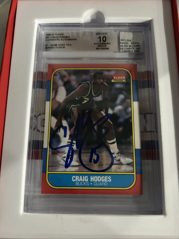 1986 Fleer Jersey Fusion- Craig Hodges GU Tag- BGS 10 Auto
