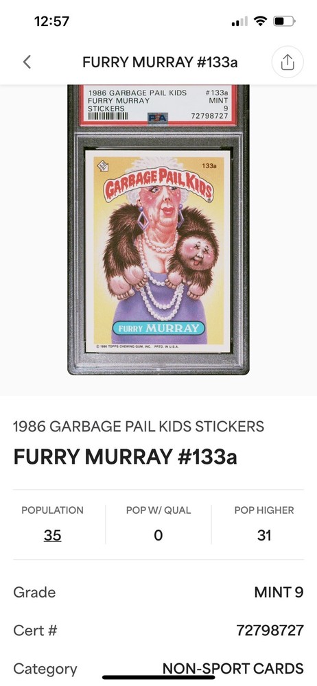 $ 46.94PSA 8 1986 Garbage Pail Kids Gored Gordon #166a Sticker Pop 8 51+ Higher