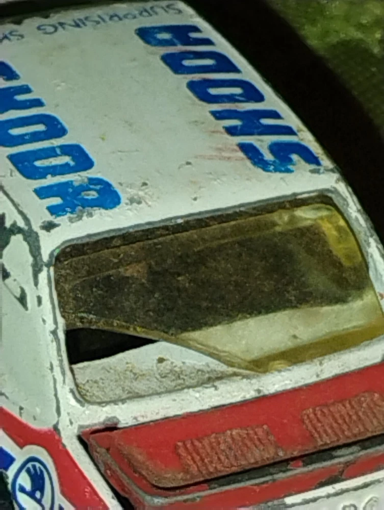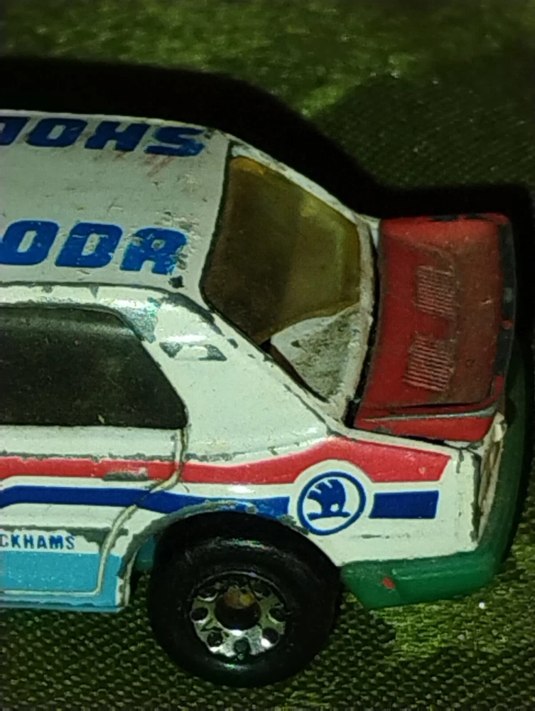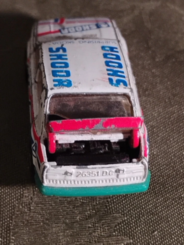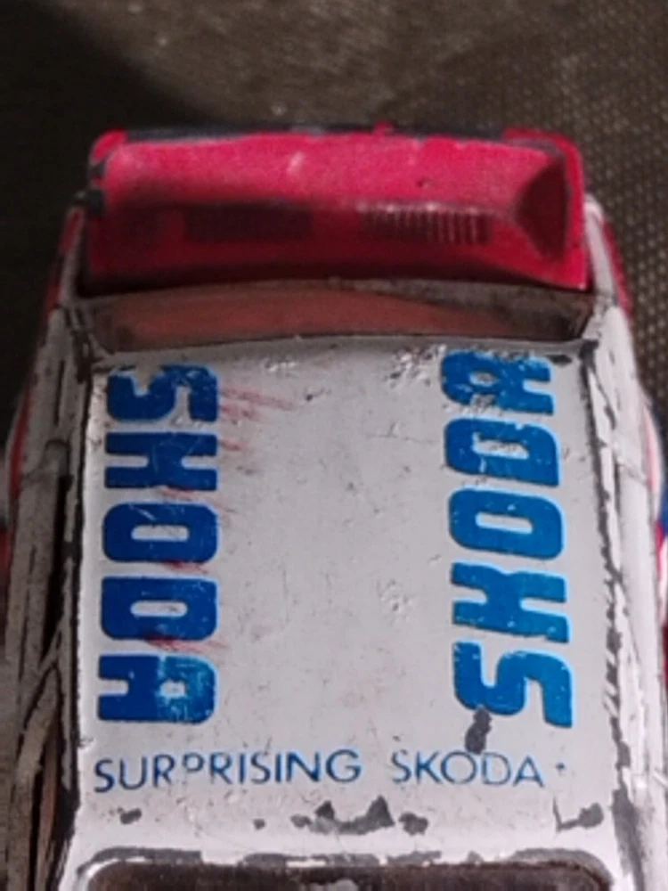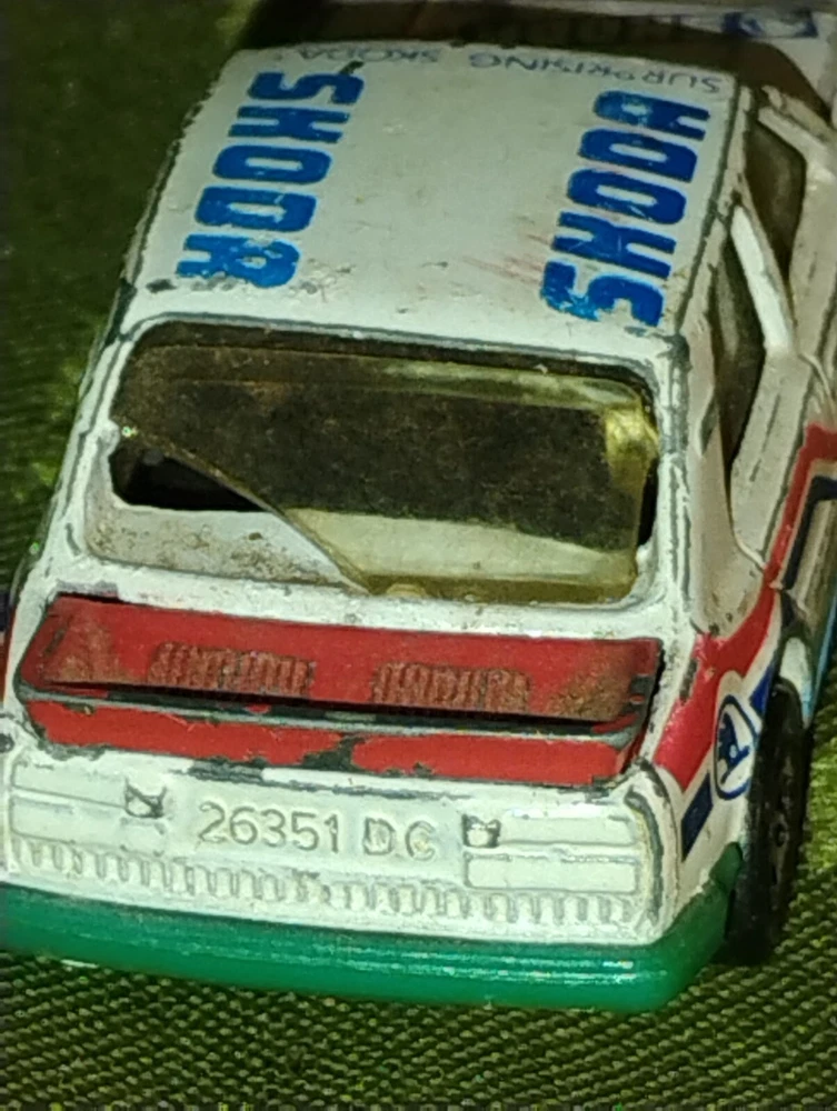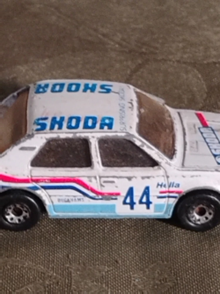 1986 MATCHBOX SKODA 130LR #44 WHITE 1:57 DIECAST 2.75" RALLY RACE CAR W RED BLUE
