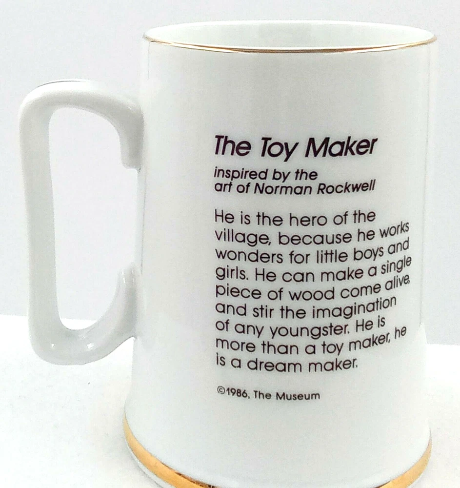 1986 Norman Rockwell Art Inspired Tankard Mug Cup Stein The Museum The Toy Maker Girl Boy Man Sailor . Measurements are approximately 4.5 inches tall by 3.25 inches wide. Condition is pre-owned. No chips or cracks. There may be some scuffing on the bottom of the item but otherwise no wear or tear is visible to the eye. Please check out our photos in this listing for further information. If you have any questions or concerns, please contact us. Thank you for your support! Please check out The Burly Owl Lady eBay store for more home decor goodies! Shipped USPS. We ship vintage and new items. We carefully pack with care to ensure the safety of each item. We do not pass these packaging costs onto the buyer. Furthermore, we do not charge any extra fees for handling. We only charge for the USPS shipping charge. We do monitor shipping prices frequently. In most cases, we do find the USPS to be the most inexpensive way to ship our products. We try to be as detailed as we possibly can in our photos and descriptions. We try to mention any imperfections in our vintage items. We may miss things from time to time or our photos may not be enough clarification for you to see the item. We will be glad to answer any questions or send you more photos. If at any time, you have a question or issue, please contact us immediately. We will contact you within 24 hours. We want to make sure you have a good experience in purchasing any of the products. If you are happy with your purchase, please leave feedback. It will help us to grow and offer more great items in our store! Thank you for your interest in one of the many products in our eBay store! Renee Burly Owl Lady