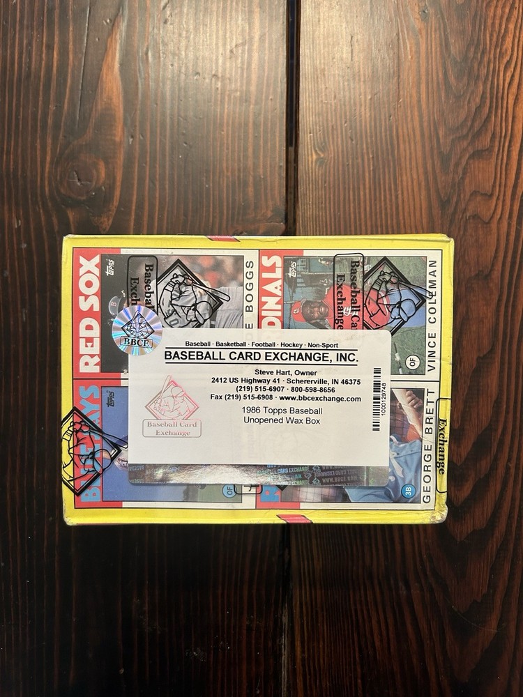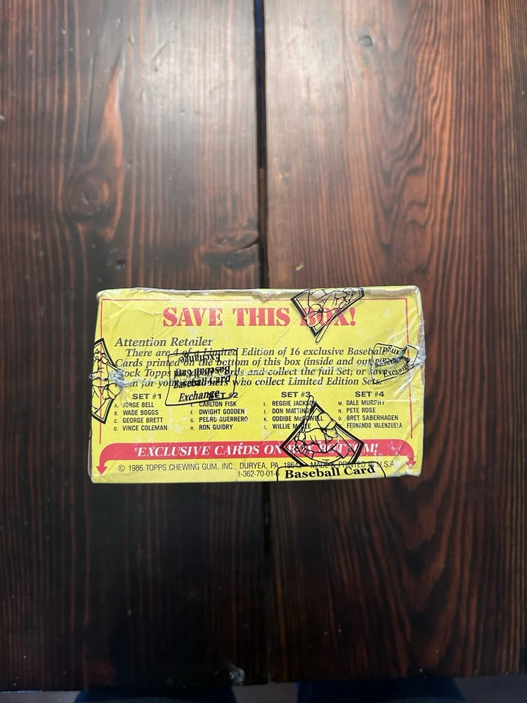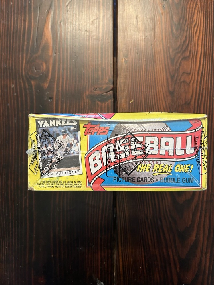 The product is an unopened wax box of 1986 Topps baseball trading cards. The boxes contain standard-sized cards featuring players from the Major League (MLB) season of 1986. Manufactured by Topps in the United States, the cards are made of card stock and are in English language. These vintage boxes are a collector's item for fans of baseball trading cards, offering the possibility of discovering rare and valuable cards from the 1986 season. Items are authenticated by BBCE.