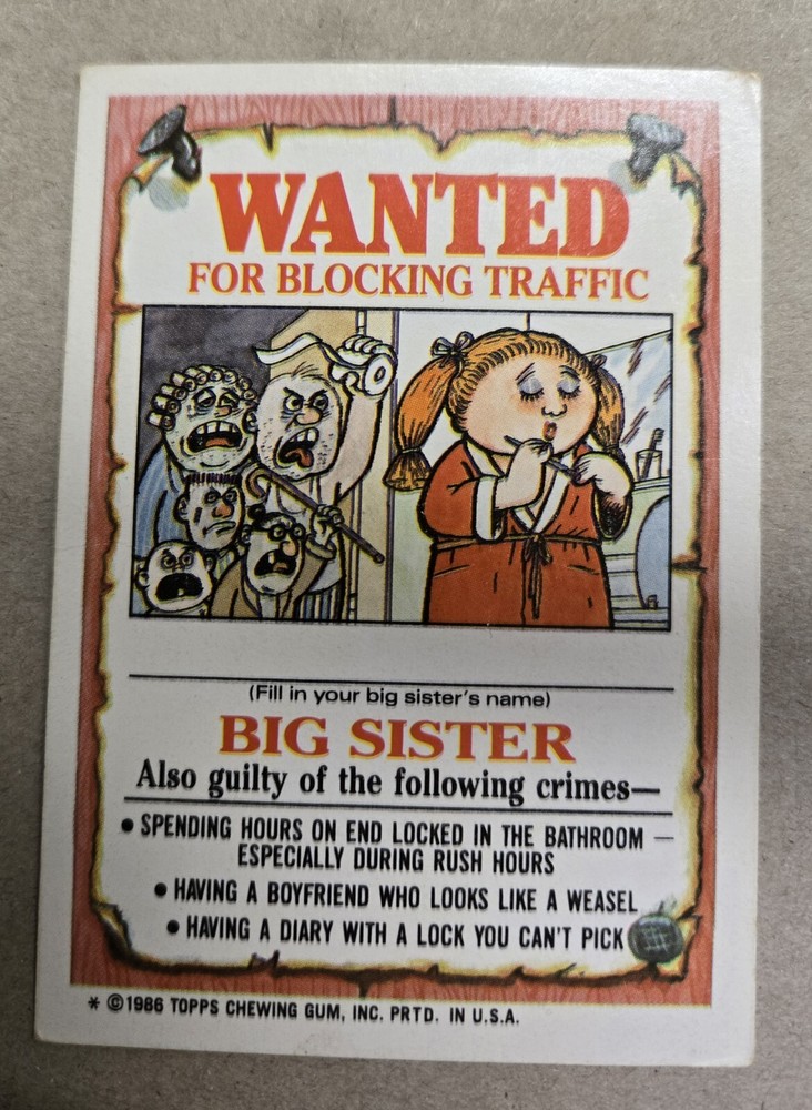 1986 Topps Garbage Pail Kids Series 3 #110a Snooty Sam est une carte de collection non sportive mettant en vedette le personnage de Sam. Faisant partie de l'ensemble Garbage Pail Kids Séries 3, cette carte présente des graphismes uniques et humoristiques. Parfaite pour les collectionneurs, cette carte est un ajout fantastique à toute collection de Garbage Pail Kids de 1986.