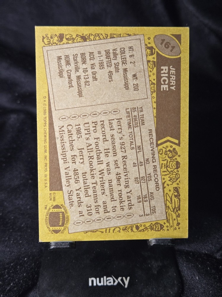 1986 Topps Jerry Rice Rookie #161 San Francisco 49ers Football Card