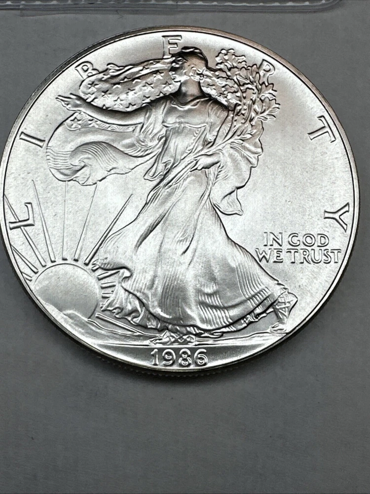 The product is a 1986 Uncirculated Silver American Eagle coin minted by the U.S. Mint. It contains 1 oz of 0.999 fine silver, making it a valuable bullion investment. This coin features the iconic American Eagle design and is a highly sought-after collectible item for coin enthusiasts and investors alike.