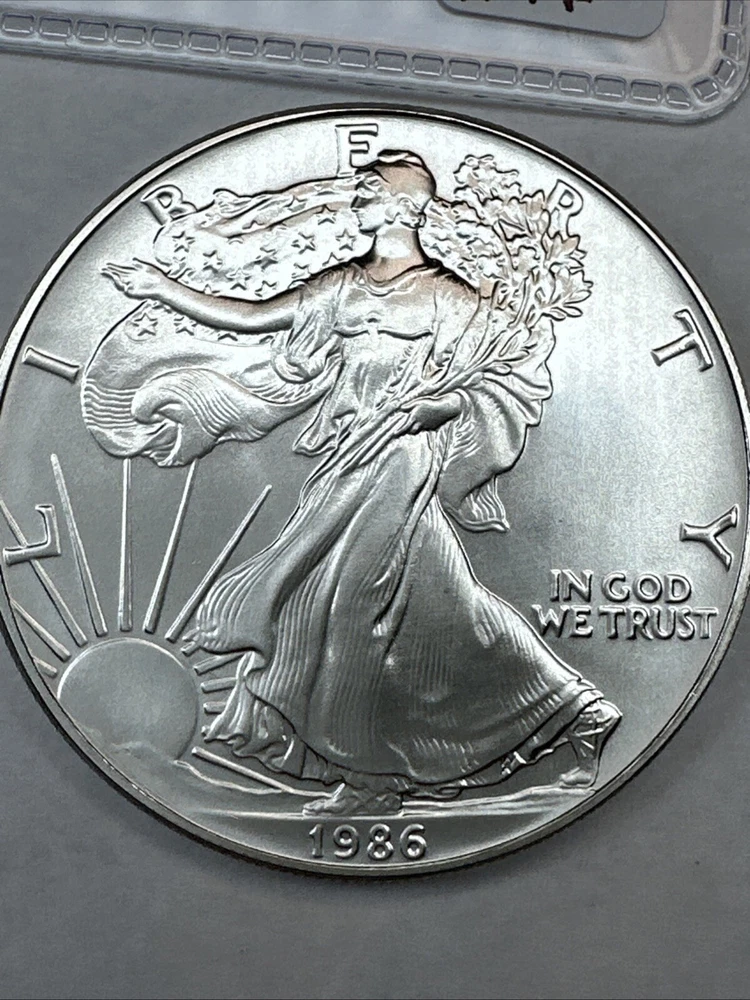 Coin: American Eagle Fineness: 0.999 Grade: Ungraded Strike Type: Business Total Precious Metal Content: 1oz Brand/Mint: U.S. Mint Precious Metal Content per Unit: 1 oz Composition: Silver Certification: Uncertified Country/Region of Manufacture: United States Year: 1986
