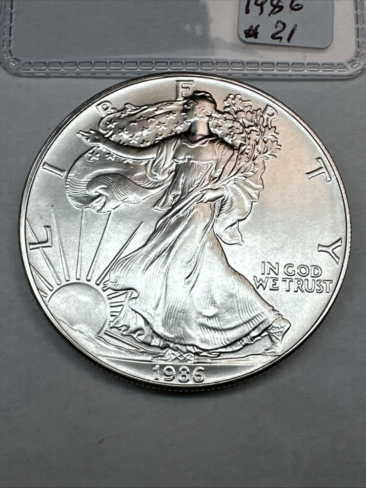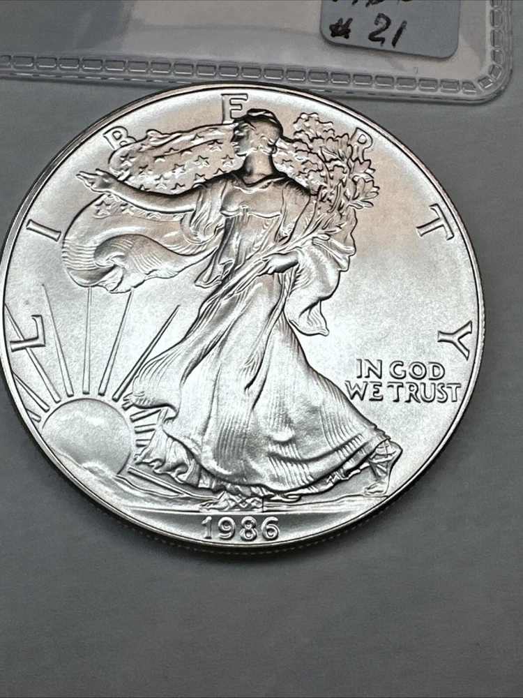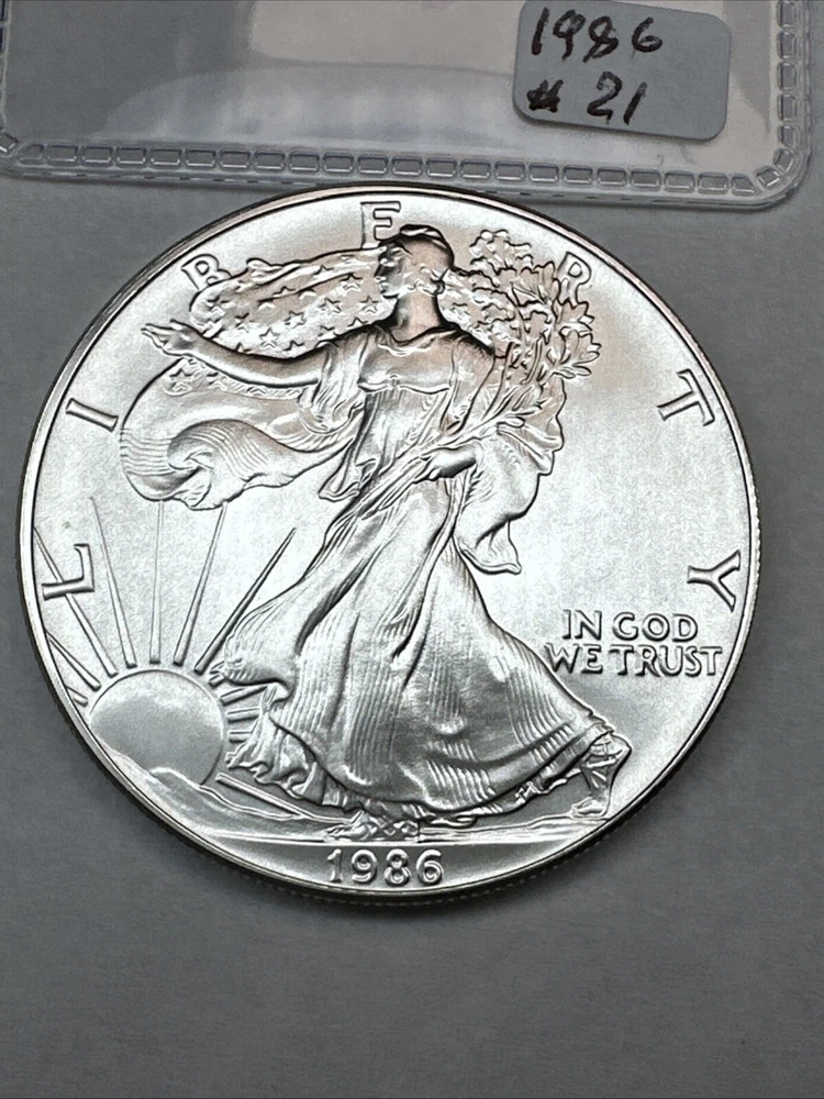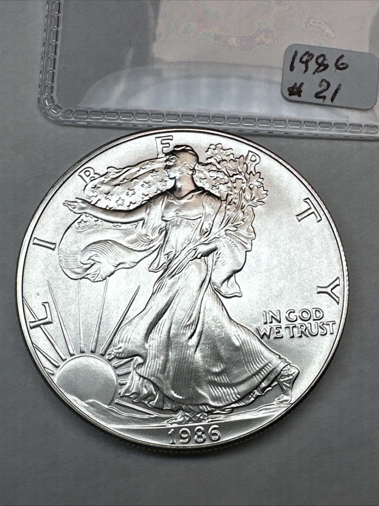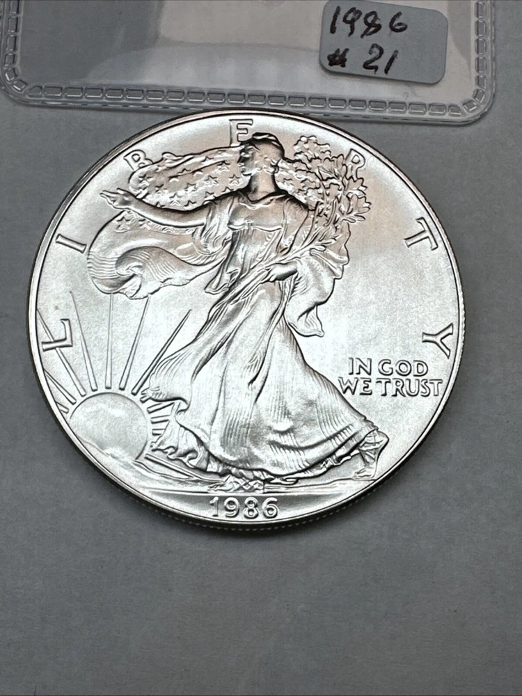 1986 Uncirculated Silver American Eagle 1oz 0.999 Fine Silver 21