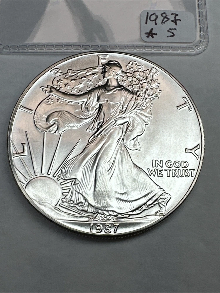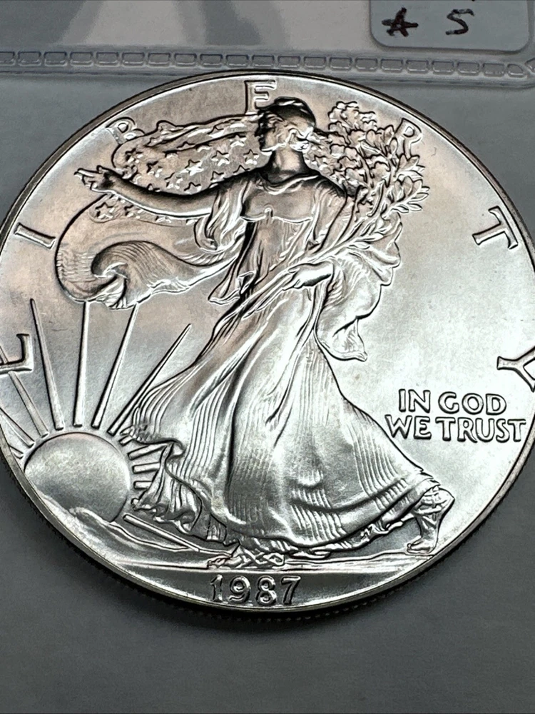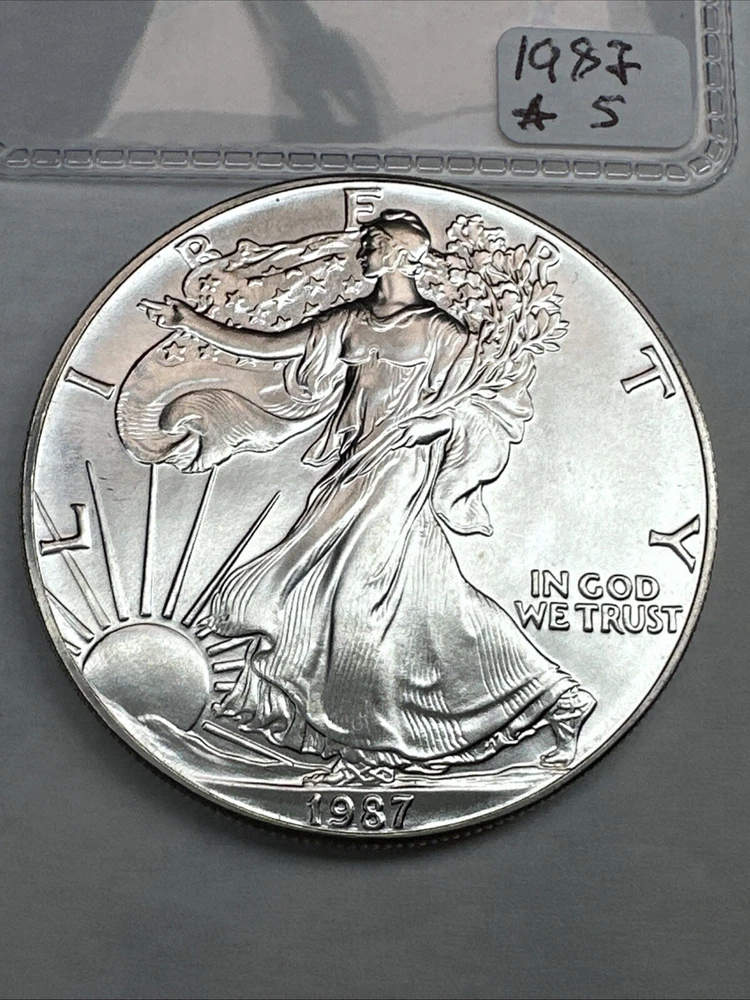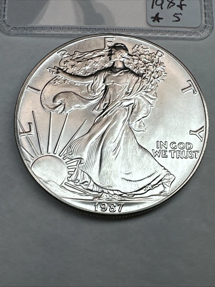 This 1987 American Silver Eagle is a highly sought-after coin for collectors and investors alike. It features a beautiful design and is made of pure silver with a fineness of 0.999. The coin is ungraded and uncertified, making it a great addition to any collection or investment portfolio. The Silver Eagle is a product of the U.S. Mint and is the second year of its production. This one-ounce coin has a precious metal content of 1oz and bears the image of Lady Liberty on one side and the American eagle on the other. Don't miss your chance to own a piece of American history with this classic coin.