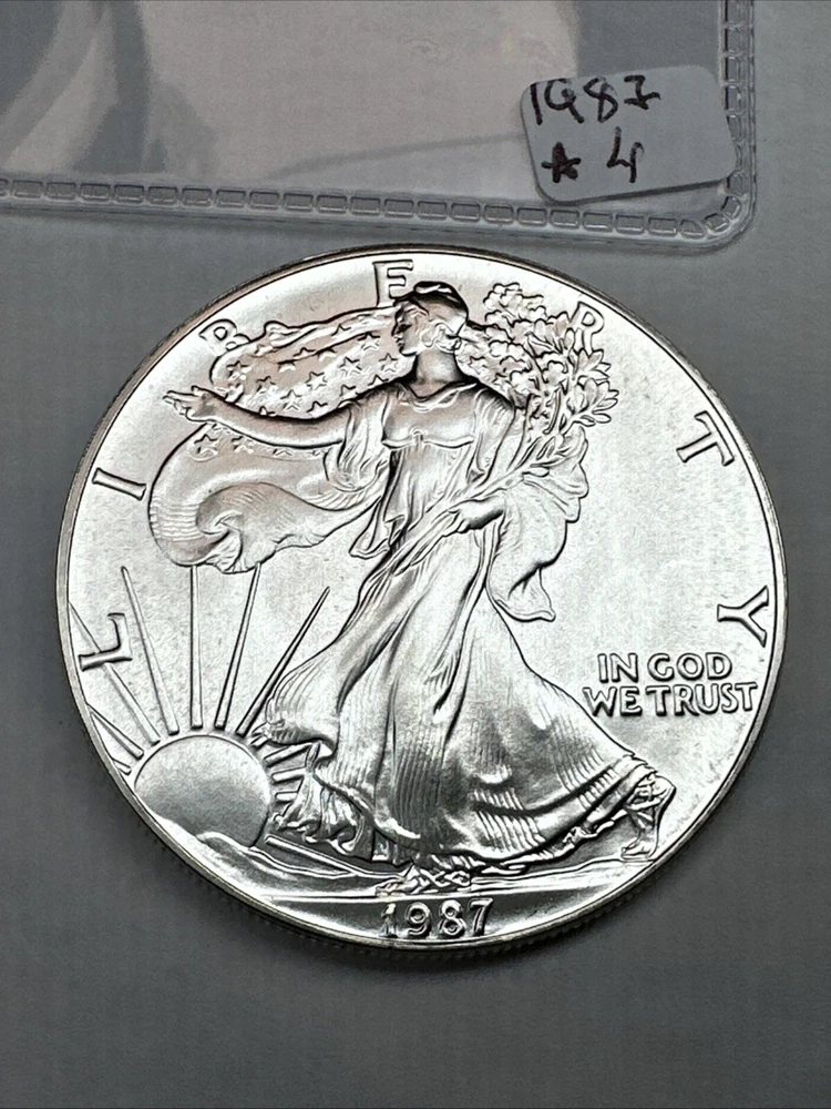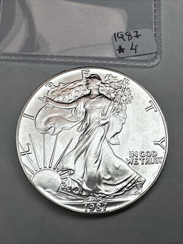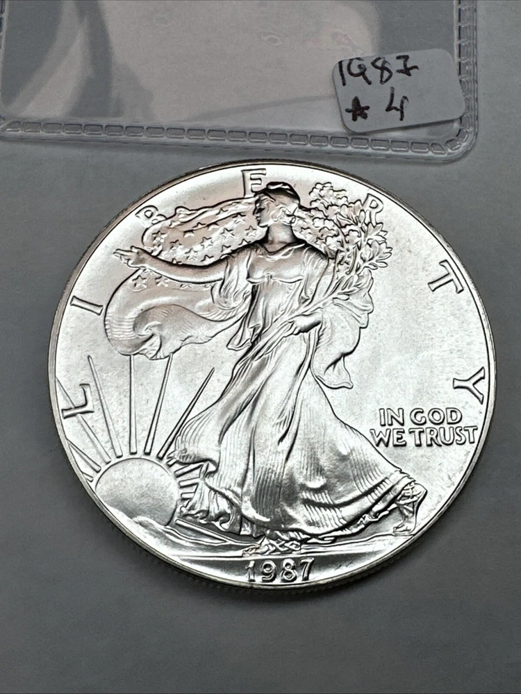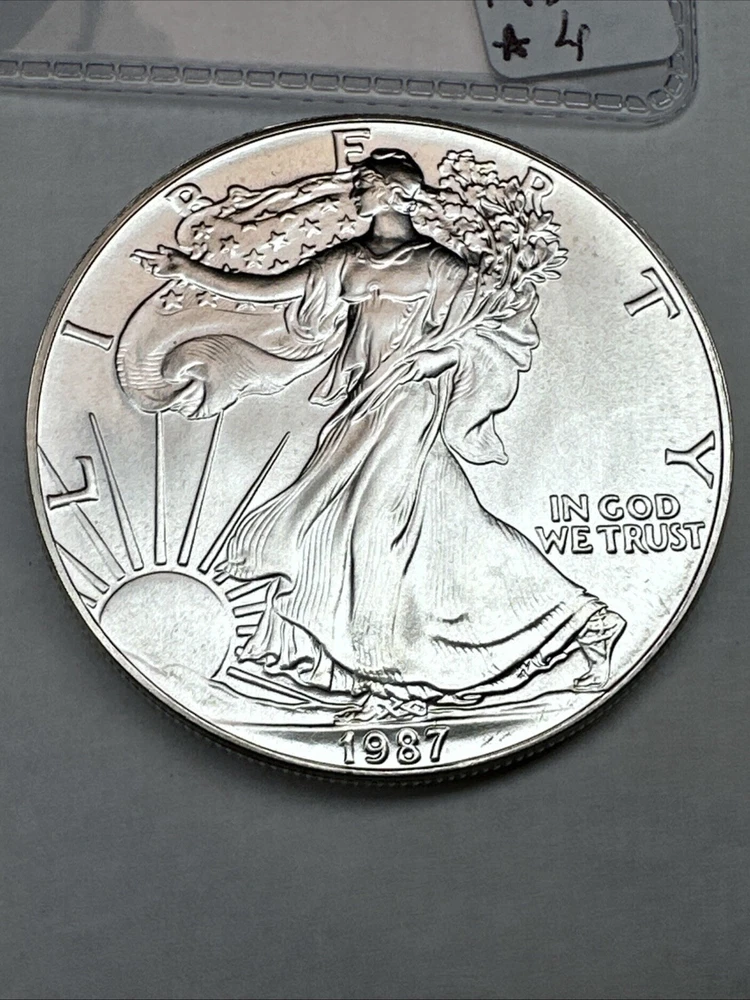 The 1987 American Silver Eagle is a 1 oz coin made of .999 fine silver. Produced by the U.S. Mint, this Uncertified Silver Eagle is the second year of issue for this iconic American coin.