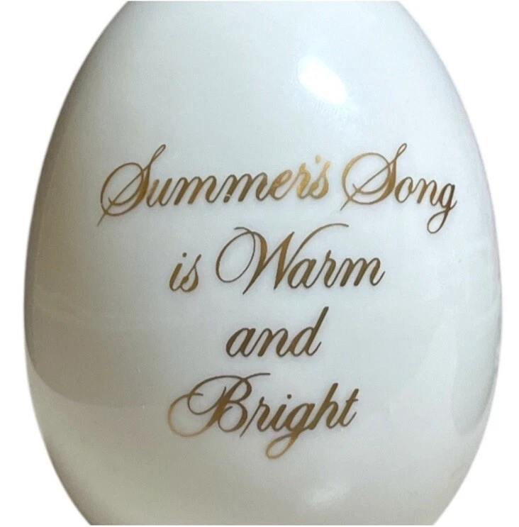 The 1987 Avon Four Seasons Porcelain Egg features a Summer theme called "Summer's Song Is Warm And Bright." It is made of ceramic & porcelain in a Multi-Color design. This original piece is from the post-1940 era and is a part of Avon's collectible decorative items. Avon Robins & Raspberries design Approx. 3”x 2” Porcelain material Perfect condition- no chips cracks or crazing Makes a great gift!