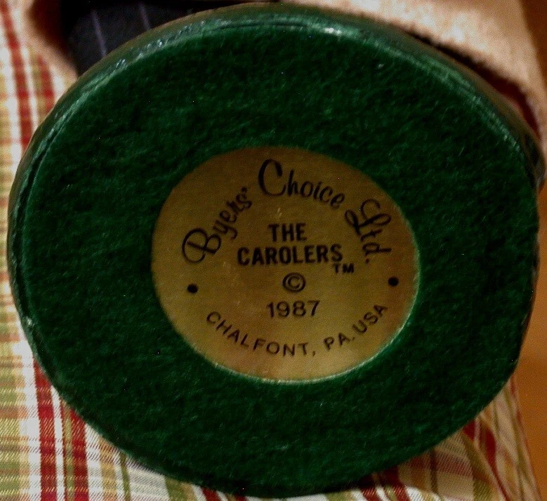 Type: Figurine Occasion: Christmas Seller Notes: “In vey good condition with a few spots of color worn from edge of base. No stains or tears.” Handmade: Yes Color: Multicolor Year Manufactured: 1987 Material: Mixed Materials Country/Region of Manufacture: United States Brand: Byers’ Choice Personalize: No Time Period Manufactured: 1980-1989