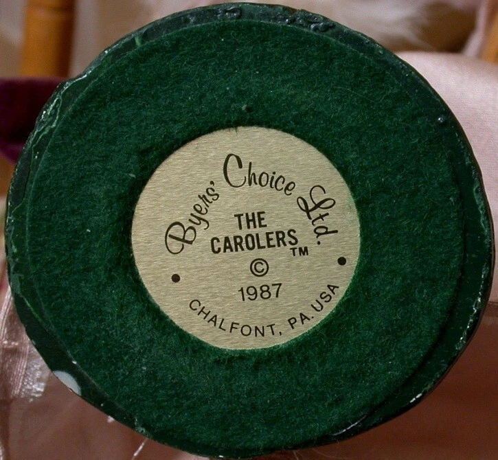 Seller Notes: “In vey good condition with a few spots of color worn from edge of base. No stains or tears.” Occasion: Christmas Country/Region of Manufacture: United States Personalize: No Handmade: Yes Color: Multicolor Year Manufactured: 1987 Type: Figurine Material: Mixed Materials Time Period Manufactured: 1980-1989 Brand: Byers’ Choice