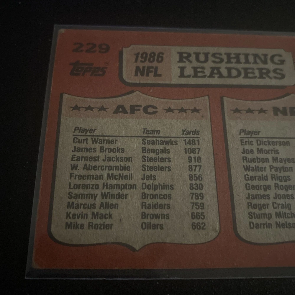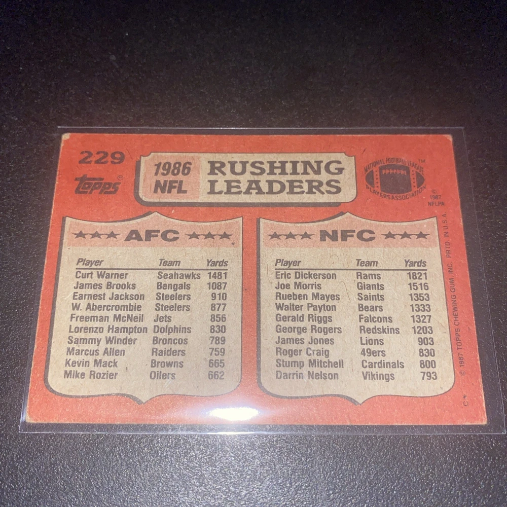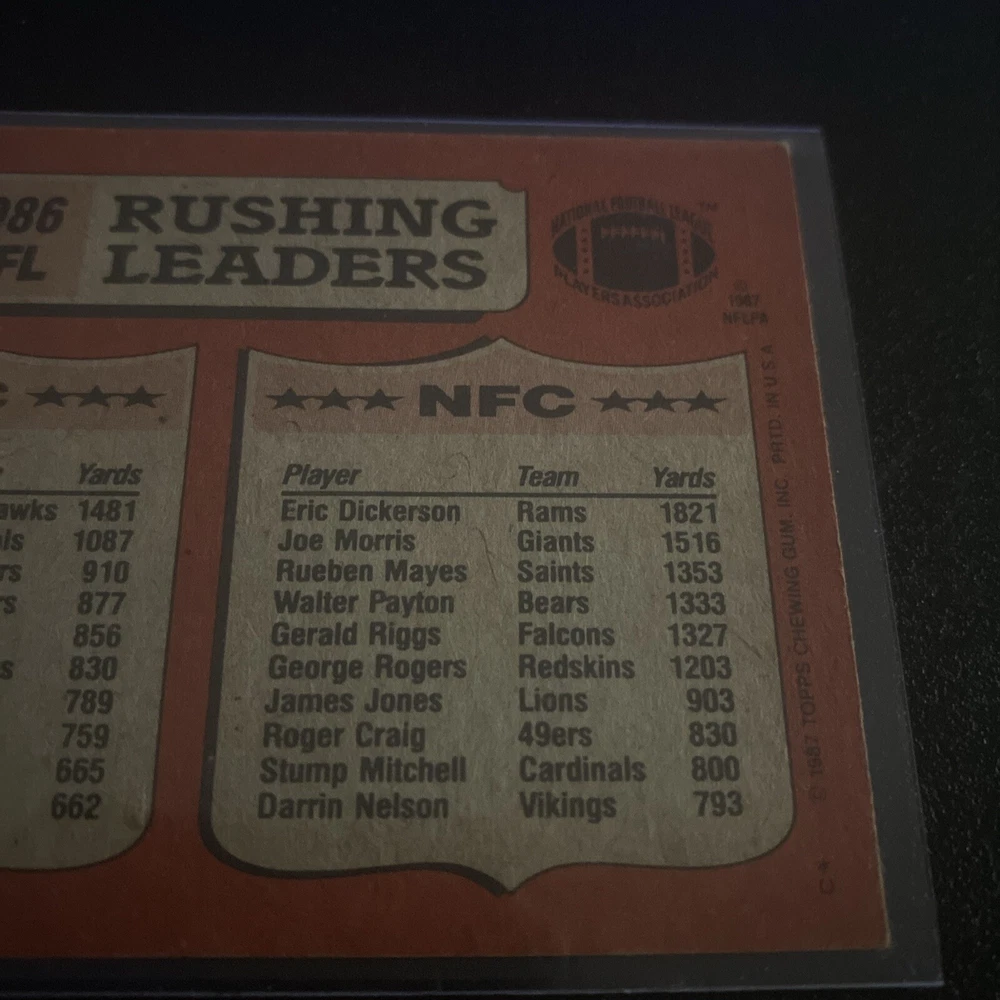 1987 Topps 1986 Rushing Leaders Curt Warner / Eric Dickerson #204 Seahawks Rams