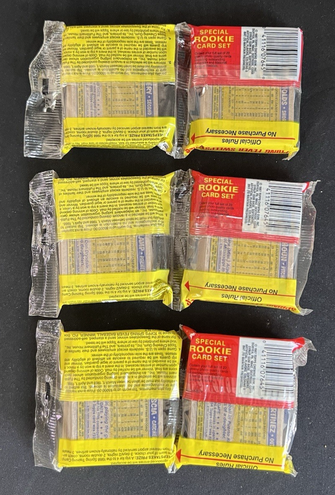 1987 Topps Baseball Jumbo Packs - Lot of 3 Jumbo Packs Canseco Bonds McGwire Bo Jackson Rookie 3 Jumbo Packs x 100 Cards Per Pack = 300 Cards + 1 Special Rookie Card Per Pack This set consists of 792 standard-size cards. Card fronts feature wood grain borders encasing a color photo (reminiscent of Topps' classic 1962 baseball set). Subsets include Record Breakers (1-7), Turn Back the Clock (311-315), All-Star selections (595-616) and Team Leaders (scattered throughout the set). The manager cards contain a team checklist on back. The key Rookie Cards in this set are Barry Bonds, Bobby Bonilla, Will Clark, Bo Jackson, Wally Joyner, John Kruk, Barry Larkin, Rafael Palmiero, Ruben Sierra, and Devon White. Look for Key Rookies & Hall of Famers in High Grade Barry Bonds Rookie Bo Jackson Rookie Wally Joyner Rookie Barry Larking Rookie John Kruk Rookie Jose Canseco Rookie Mark McGwire Nolan Ryan Don Mattingly Will Consider Reasonable Offers. Please see the high-res images for details. Feel free to reach out with any questions or if you're looking for something specific. Please follow the Big Joe Knows Cards Store for new items coming soon! We’ll be listing from a large and carefully curated collection of Vintage & Modern Baseball, Basketball, Football, Hockey, Garbage Pail Kids, Magic: The Gathering, Marvel, Pokémon, and Disney cards, etc. CONTENTS OF UNOPENED PACKS: - With the exception of the players visible on the front and/or back of a pack, there are no guarantees about the contents of any unopened material. Higher value packs have been authenticated and/or graded by the foremost industry experts from PSA & BBCE. Packs that have not been wrapped or graded by BBCE or PSA are being SOLD AS FACTORY SEALED . If you have any questions about the authenticity of any product being sold, please feel free to ask for additional photographs and/or information. ITEM(S) IN IMAGES: - Unless otherwise noted, the item(s) in the images are of the exact product that you will receive. Please be sure to review the high-resolution images. CARD CONDITION OF RAW/UNGRADED CARDS: - When assigning the condition of a card, we use the eBay card condition guidelines , which include i) Poor, ii) Very Good, iii) Excellent, and iv) Near Mint or Better. Please note, these four conditions (and standards) do not necessarily correspond directly with professional grading services. - When estimated grades are provided, they are being provided for evaluation purposes only. While the best efforts have been made to provide an accurate assessment of the condition of the cards, these estimates are not a guarantee of grades. Actual grades assigned by a professional grading service (PSA, SGC, etc.) may be lower or higher than the estimates that have been provided. - If there is an issue with the card that does not seem to show up in the scan, best efforts will be made to call them out in the ' Condition description ' section of the listing. When the word ' Mint ' is used in the listing title and/or description, it means that, in my opinion, the card has a very good chance on receiving a grade of 8 NM-MT, 9 Mint, or 10 Gem Mint from a reputable professional grading service like PSA. Again, this description is no guarantee of the actual grade that a card may receive and should be used for evaluation purposes only. SHIPPING & COMBINED SHIPPING: - We take great care to ensure that our collectibles arrive in the same condition that you purchase them. All of our shipments are insured, and we photograph/record the packaging of our high-end products. - When requested, we will do our best to combine shipping when multiple items are purchased. There is a $1.99 handling fee built into the shipping cost you see listed on each item. When shipping is combined, the total shipping cost will be equal to a) the actual cost of shipping the combined items via your preferred method; plus, b) a handling fee ($1.99 on the first item and $0.99 for each additional item). Typically, you will have the option to select eBay's Standard Envelope Shipping or USPS Ground Advantage. - Please note, when we ship raw/ungraded cards via eBay's Standard Envelope Shipping Program, the cards will be placed in a new penny sleeve inside a new Card Saver I. The card(s) are then placed into a cardboard mail stiffener secured by painter's tape. Due to the weight and size requirements of the Standard Envelope program, we cannot combine more than three (3) cards into a Standard Envelope. We will not combine shipping using eBay's Standard Envelope Program when the combined value of the cards exceeds $25. You will have the option to have the cards shipped individually using the Standard Envelope or combine up to fifty (50) cards with a combined value of up to $500 via USPS Ground Advantage.