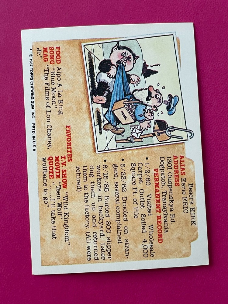 $ 7.111987 Topps GPK Garbage Pail Kids 379a LOCKED DORIAN Trading Card FAT Line ERROR