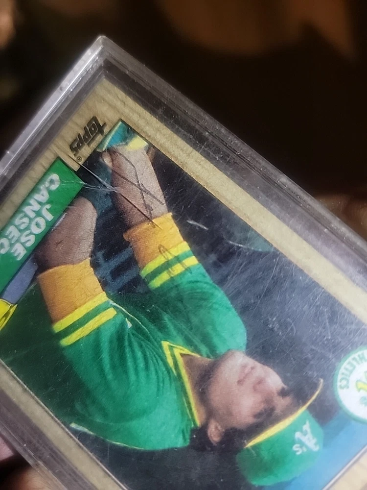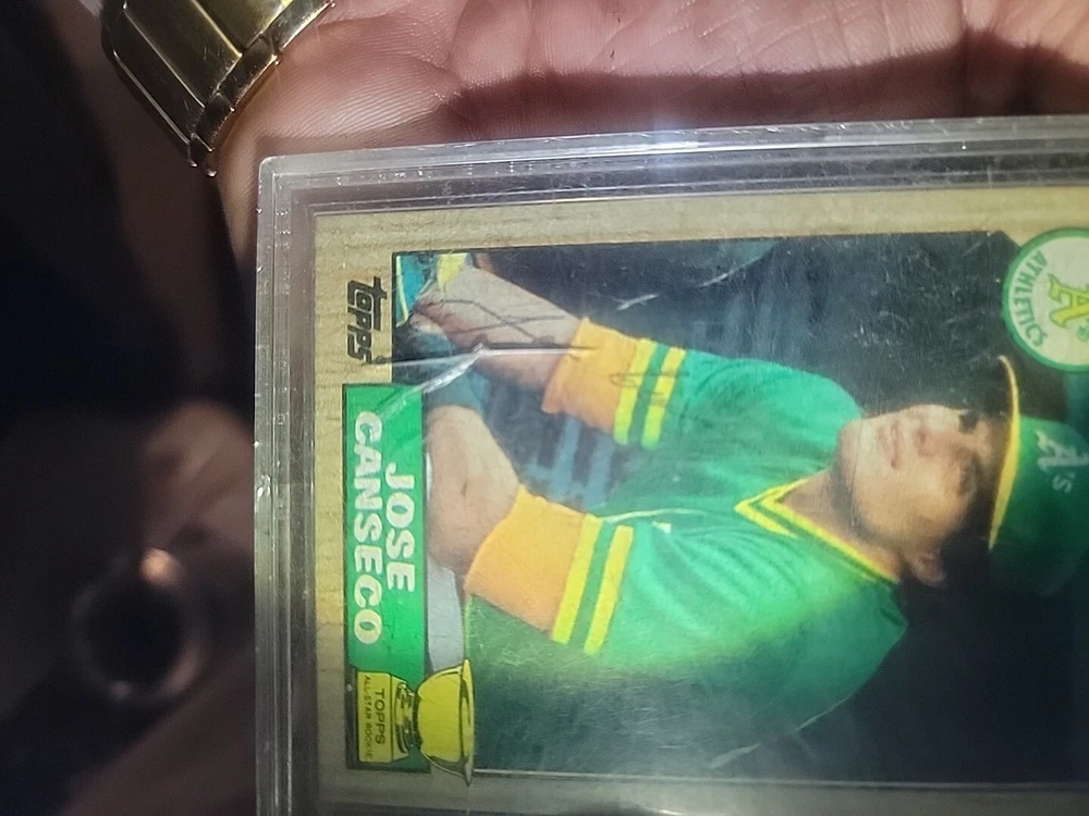 This is a rare and valuable 1987 Topps baseball trading card featuring Jose Canseco, a former Major League Baseball player for the Oakland Athletics. The card is autographed and is in excellent shape, near mint or better. It is a 1987 Topps All-Star Rookie Cup card, with the card number 620, and is a must-have for any serious baseball card collector. The card is ungraded and comes from the sports trading card category, specifically from the Trading Card Singles and Sports Mem, Cards & Fan Shop categories. Don't miss out on this opportunity to own a piece of baseball history!