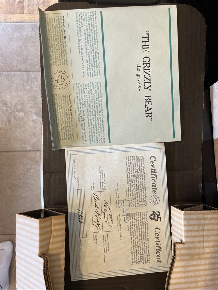1988 Dominion China “The Grizzly Bear” Paul Krapf Limited Edition W/COA Og box
