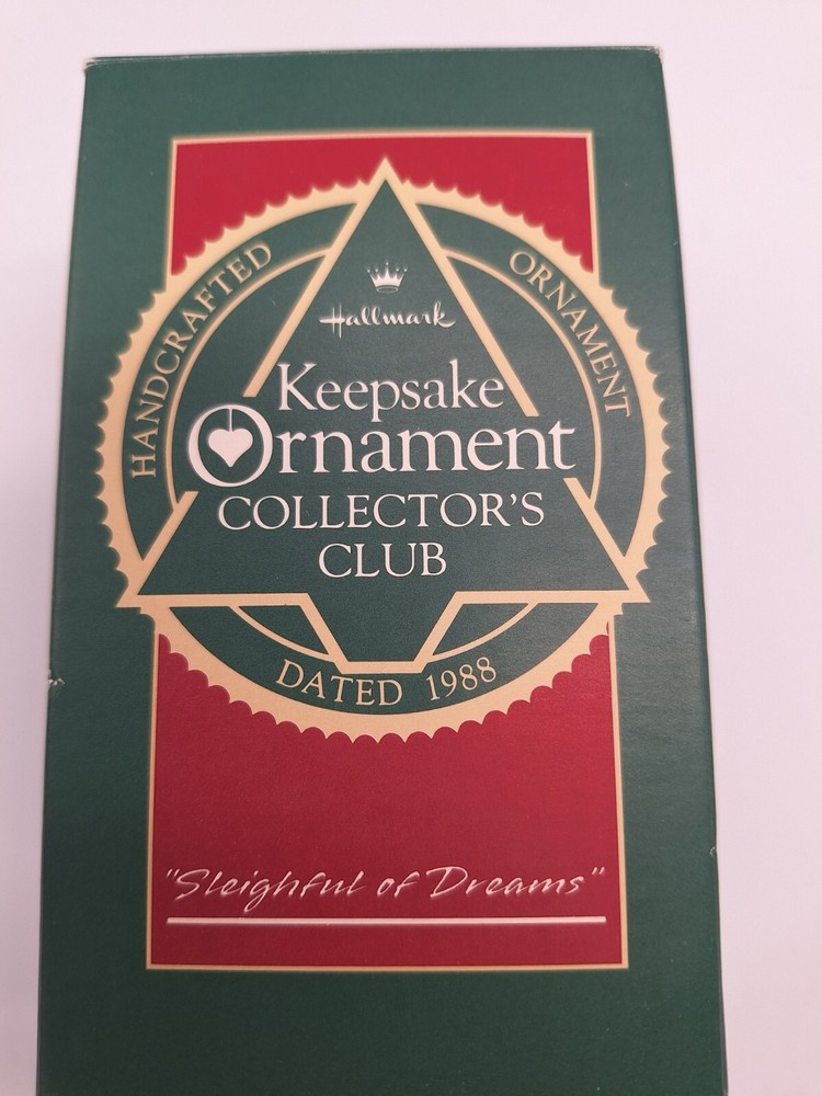 This Hallmark Keepsake Collector's Club Ornament from 1988 is a must-have for any Christmas lover. The Sleighful of Dreams Sleigh ornament is beautifully crafted. The ornament is part of the Hallmark Ornaments collection and is perfect for collectors and holiday enthusiasts alike. The ornament is shaped like a sleigh and features intricate details that make it stand out from other Christmas decorations. It is an ideal gift for anyone who loves vintage or classic Christmas decorations. The Hallmark Keepsake Collector's Club Ornament is a great addition to any Christmas collection and is sure to bring joy and nostalgia to anyone who sees it.