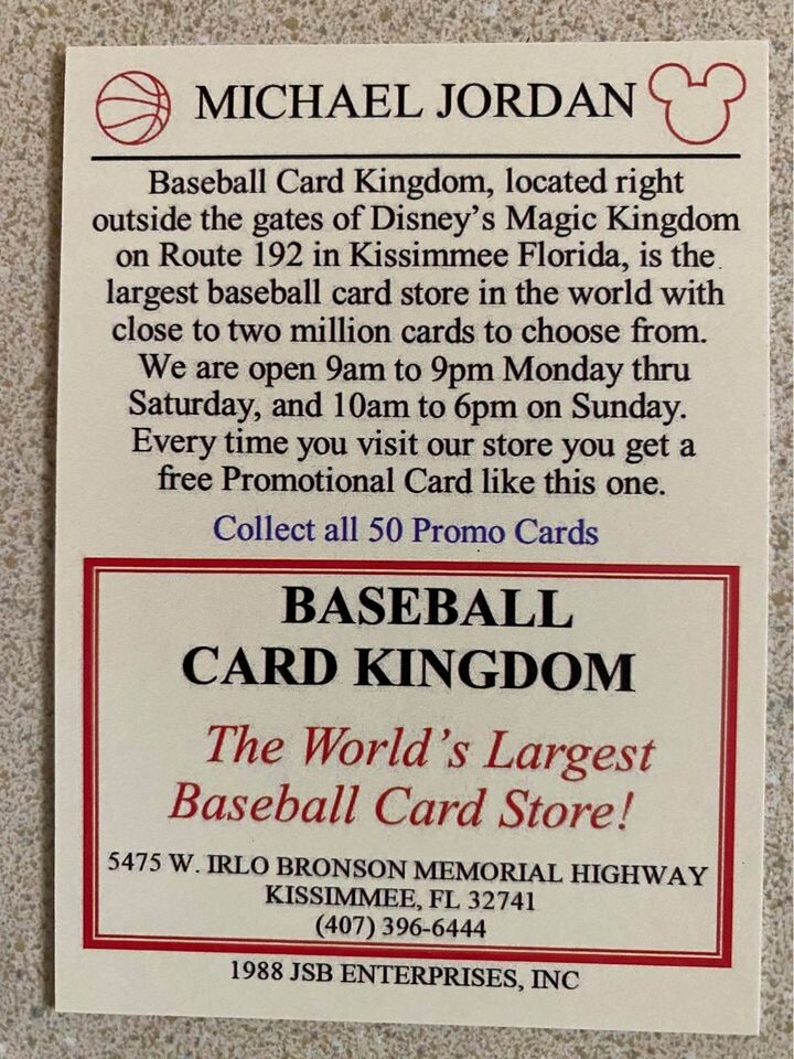 Near mint to mint 1988 Baseball Card Kingdom Michael Jordan Slam Dunk Champion. This newly uncovered (and unnumbered) card depicts MJ after he won his 1st Slam Dunk competition. This card is believed to be VERY rare and in extremely short supply. I was able to get my hands on a few, but at this time I am uncertain if I will be able to obtain any more. All cards come securely packaged in a penny sleeve, semi rigid holder with liner and cardboard insert. FREE SHIPPING!