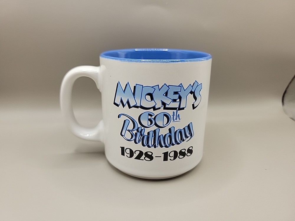 Celebrate a classic piece of Disney history with this Mickey Mouse's 60th Anniversary Mug from 1988. This vintage coffee cup is a theme park souvenir that captures the magic of Walt Disney World's iconic character. Crafted in Japan, it features the beloved Mickey Mouse and is a must-have for any serious Disney collector or enthusiast. This collectible mug is part of the celebrated Disneyana range, showcasing the enduring legacy of Disney's storytelling and memorabilia. Perfect for your morning coffee or as a display piece, this mug is a timeless tribute to one of the world's most cherished franchises.