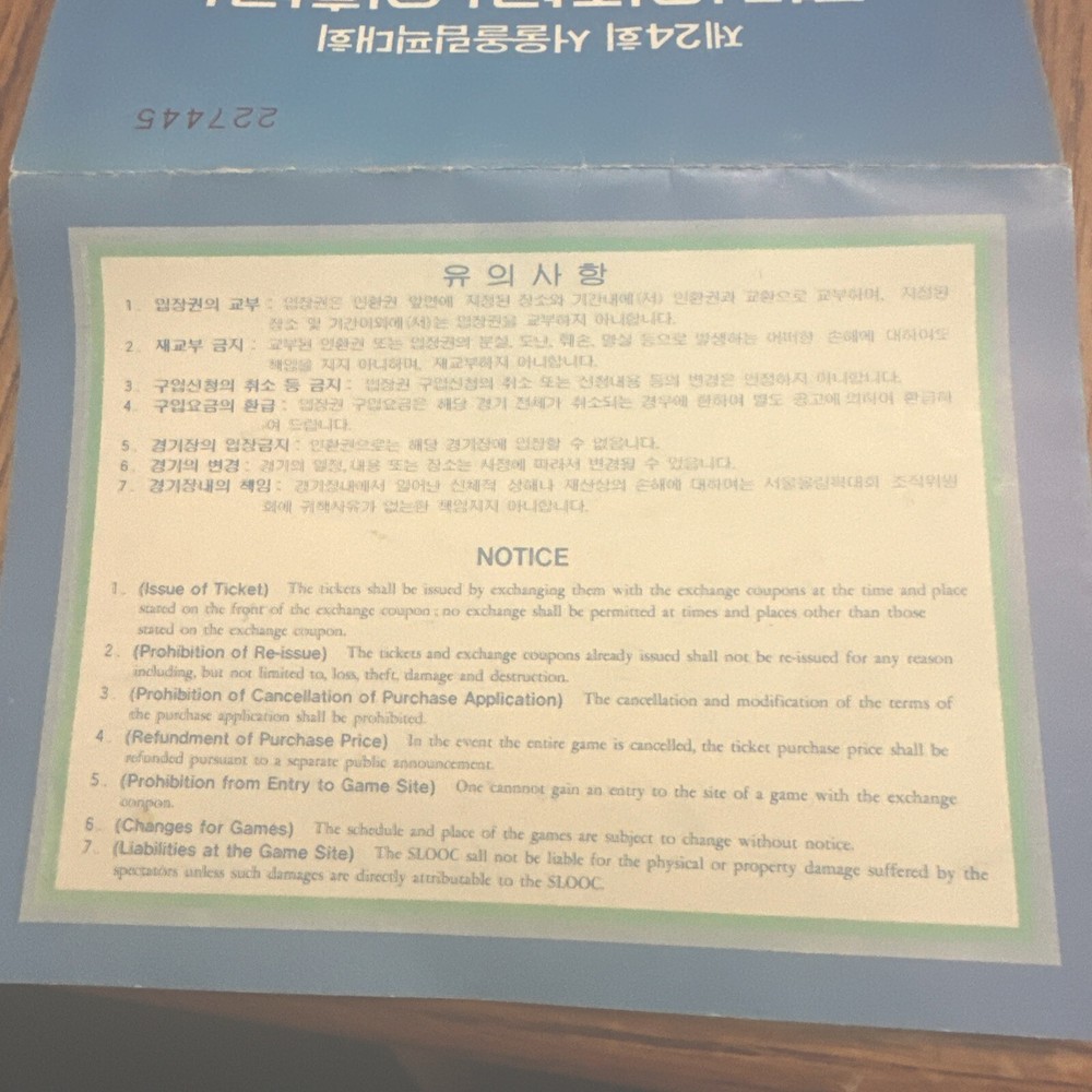 The 1988 Olympics Ticket Exchange Coupon is an original, ungraded vintage piece of sports memorabilia related to the Olympics. This item likely allowed spectators to exchange their tickets for different events during the 1988 Olympic Games. As a vintage piece, it offers a unique glimpse into the ticketing system and fan experience of the Olympics held that year in Seoul, South Korea. It is a valuable collectible for sports enthusiasts and collectors interested in Olympic history.