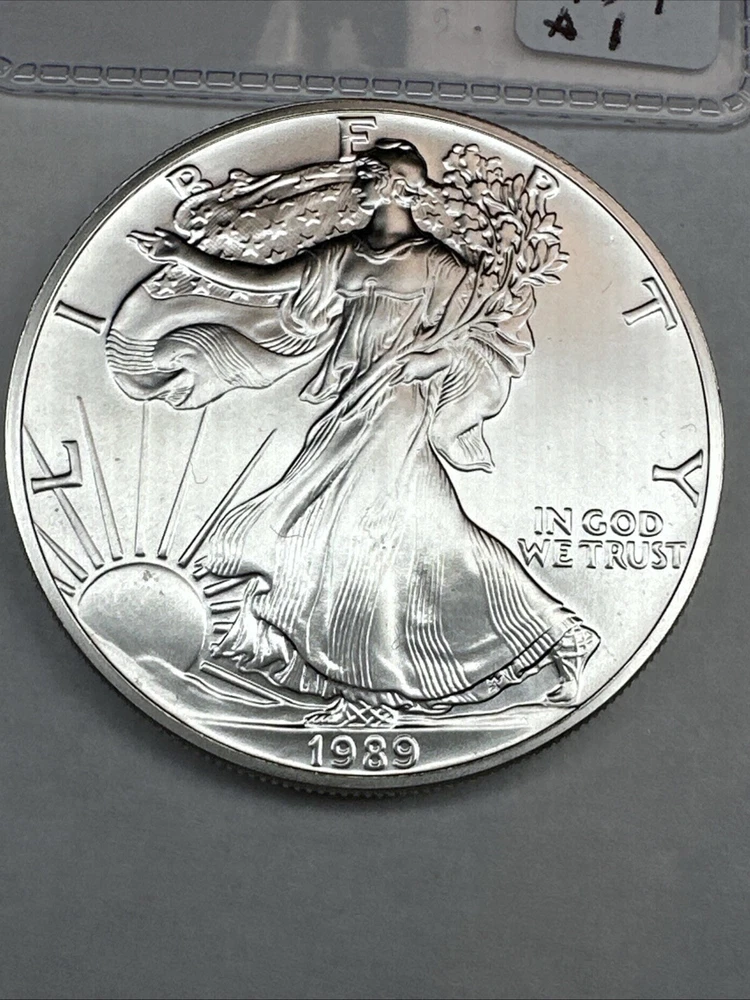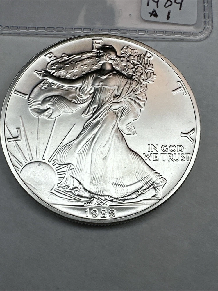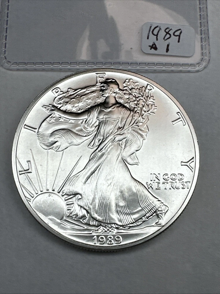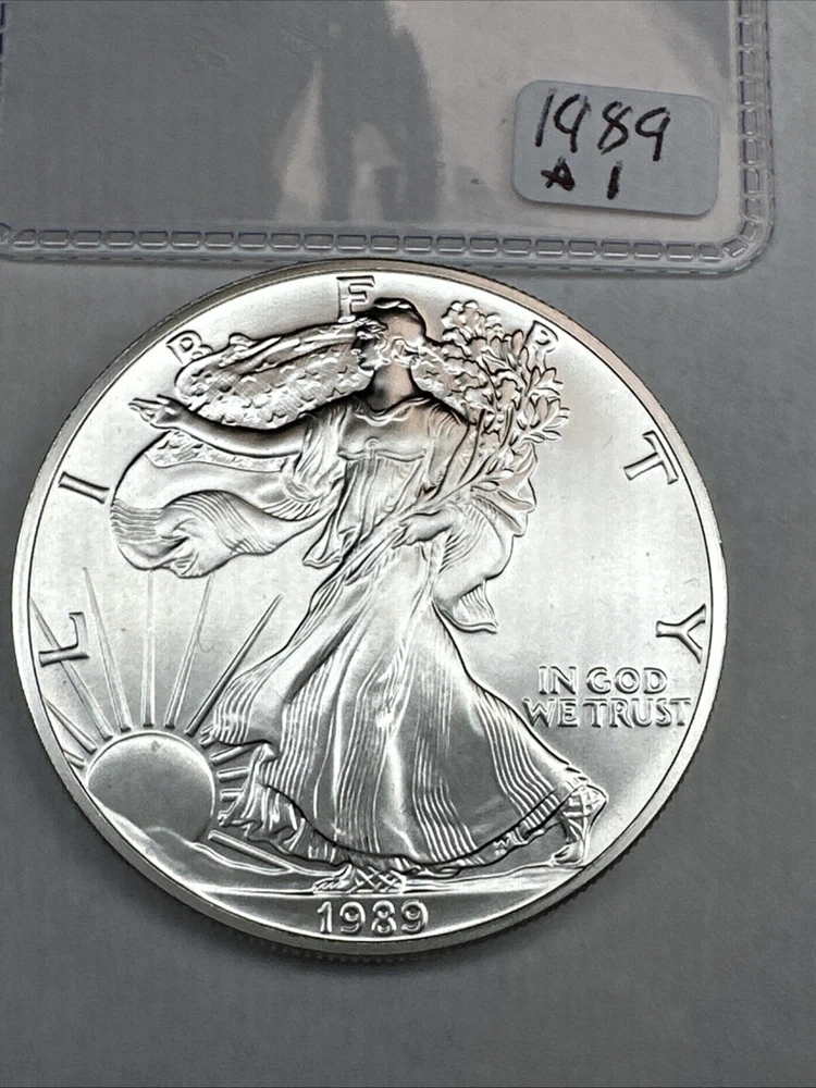 Strike Type: Business Certification: Uncertified Brand/Mint: U.S. Mint Brand: Silver Eagle Grade: Ungraded Composition: Silver Year: 1989 Fineness: 0.999 Total Precious Metal Content: 1oz Coin: American Eagle Country/Region of Manufacture: United States Precious Metal Content per Unit: 1 oz