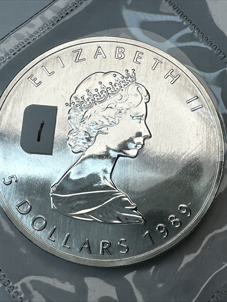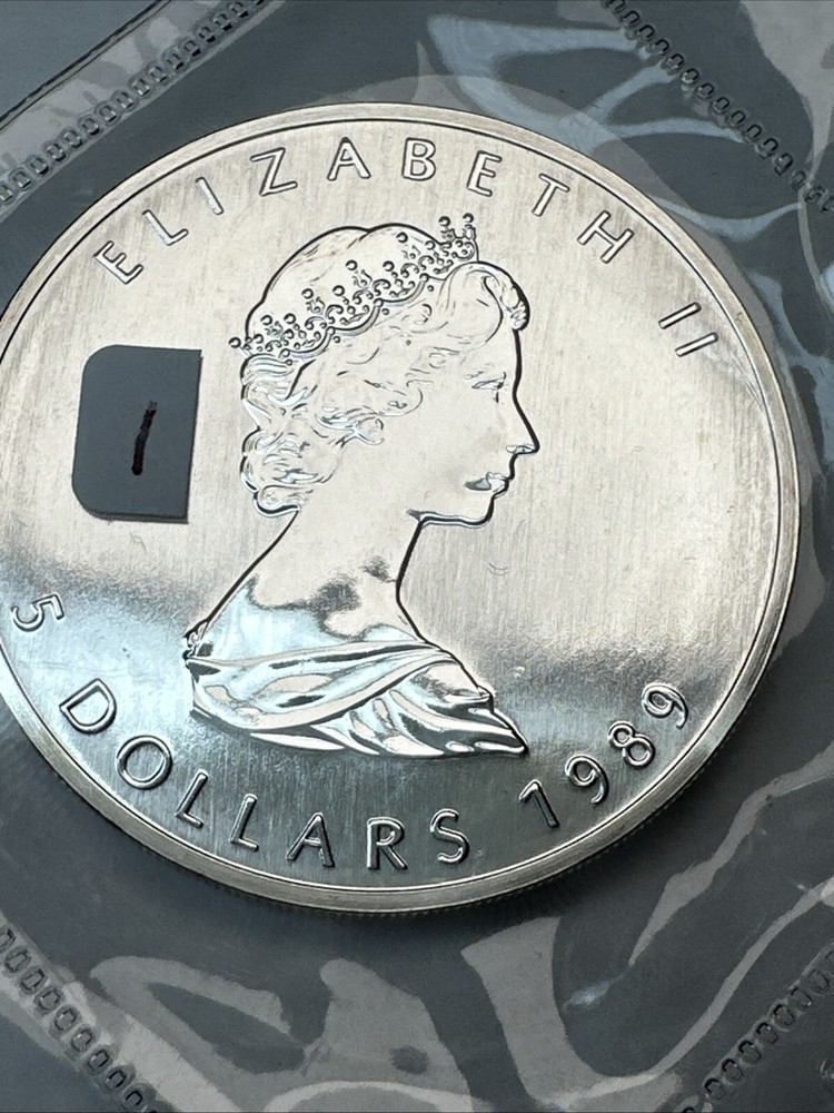 Own a piece of Canadian heritage with this 1989 Canada $5 Silver Maple Leaf coin. Made of 0.9999 fine silver, this coin features the iconic image of the Canadian Maple Leaf on the obverse side. The coin comes in an original plastic capsule from the Royal Canadian Mint and is in uncirculated condition. This coin is a great addition to any collection or investment portfolio. The coin's weight is 1 ounce and the total precious metal content is also 1 ounce. The strike type is business and the coin is ungraded. Certification is not included, but the coin's authenticity is guaranteed by the Royal Canadian Mint. Don't miss out on the opportunity to own this beautiful and valuable coin. BU Uncirculated
